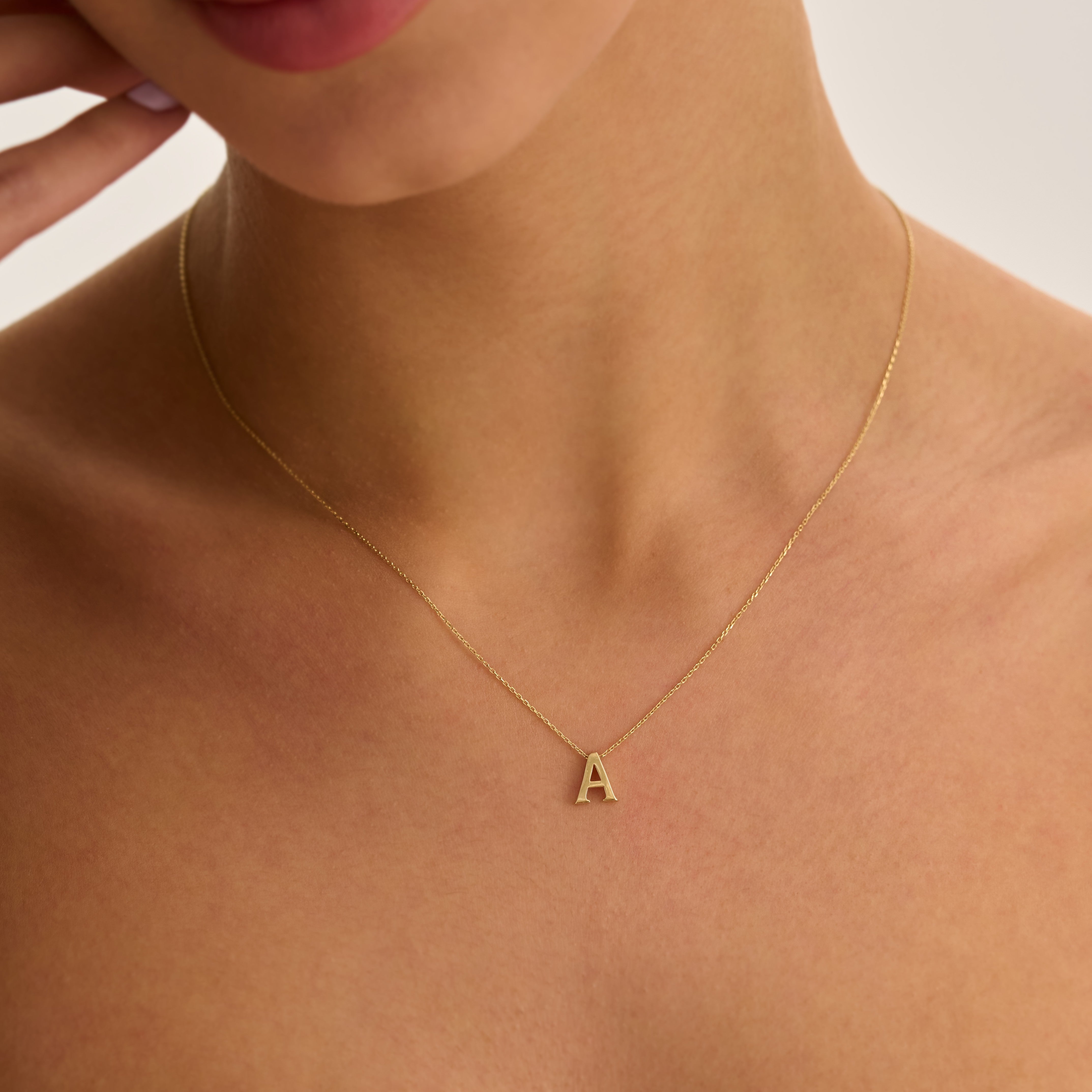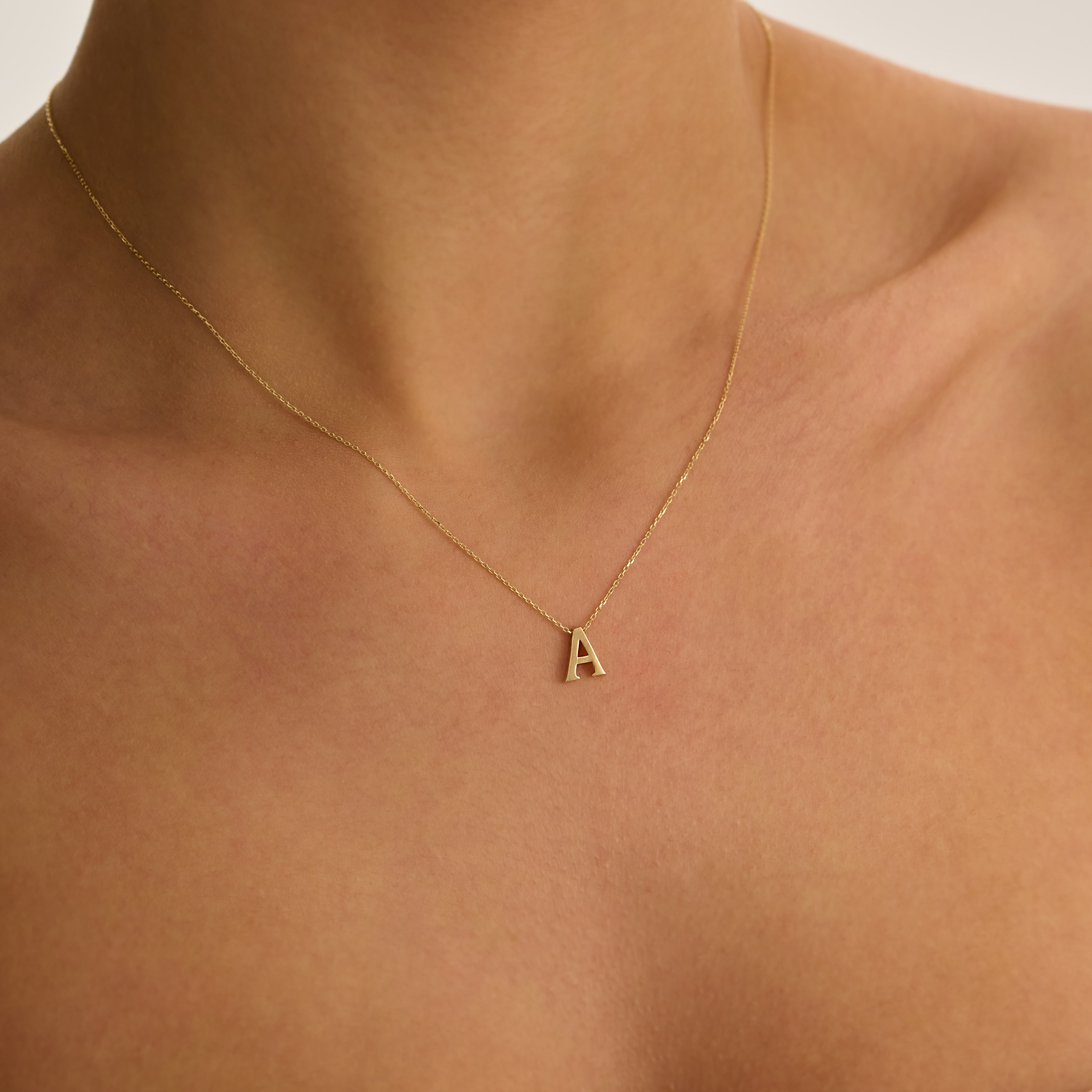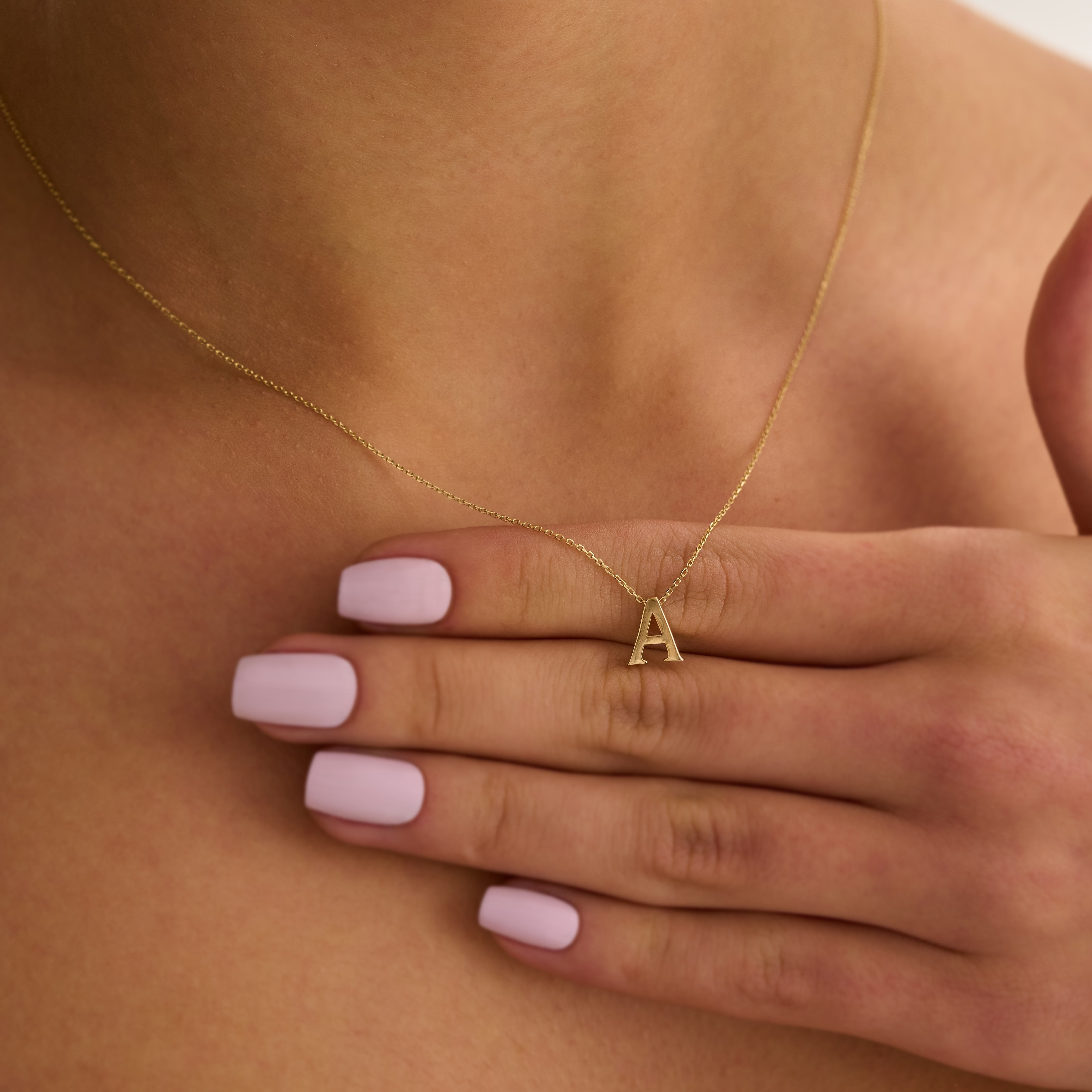 A Harf Kolye modeli, yaklaşık 1.40 gr ağırlığında 14 Ayar Sarı Altın kullanılarak özel olarak tasarlanmıştır.