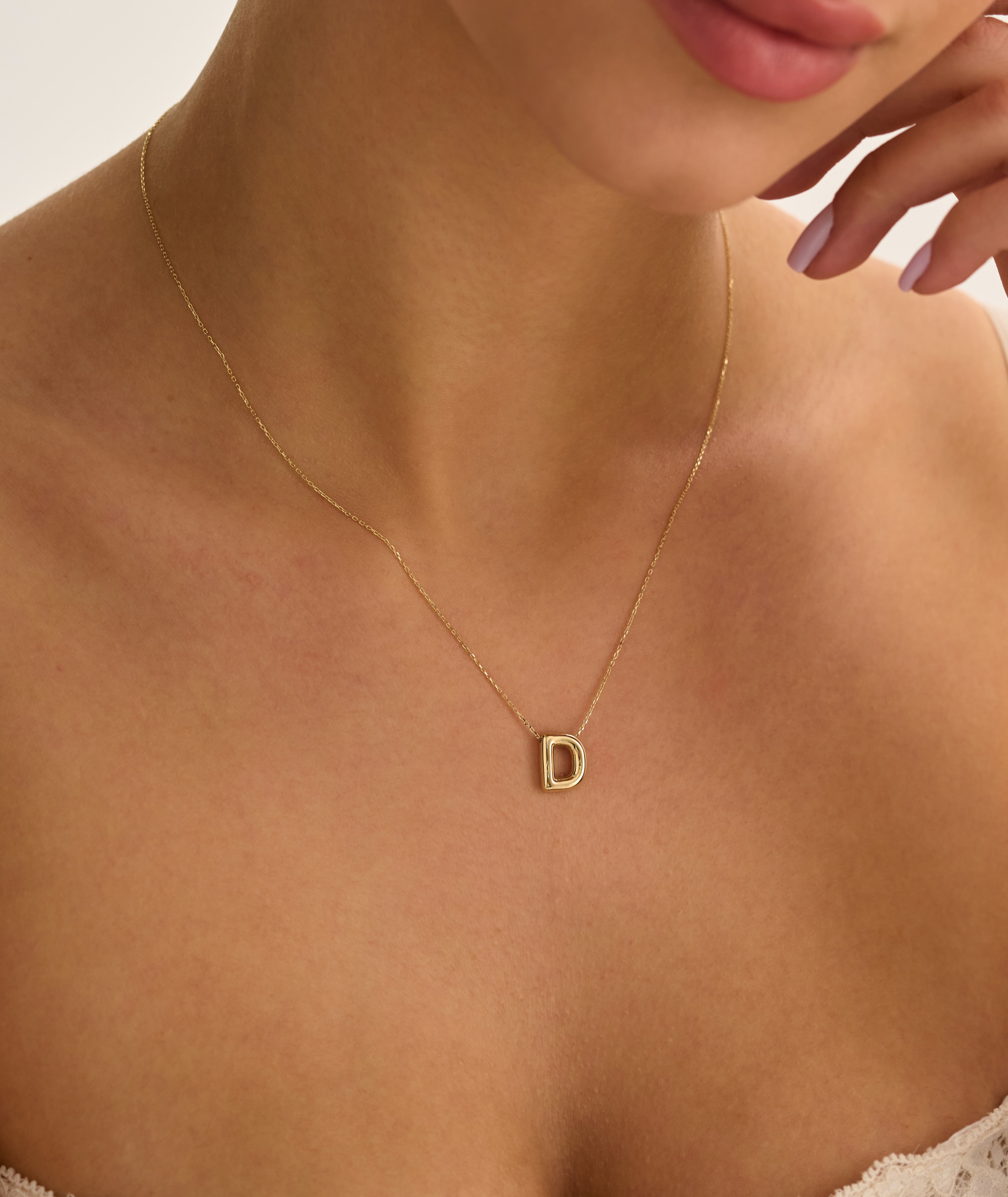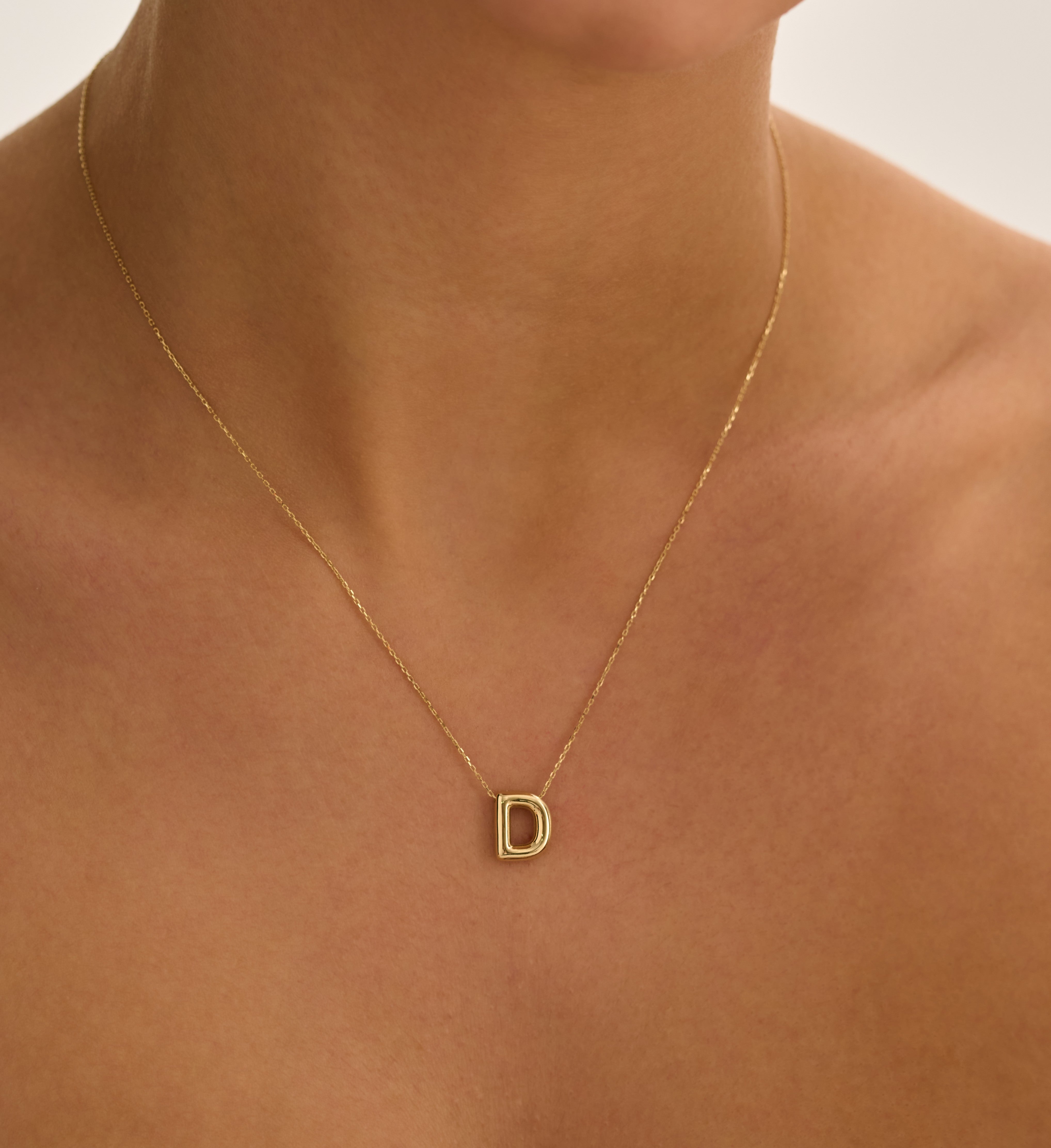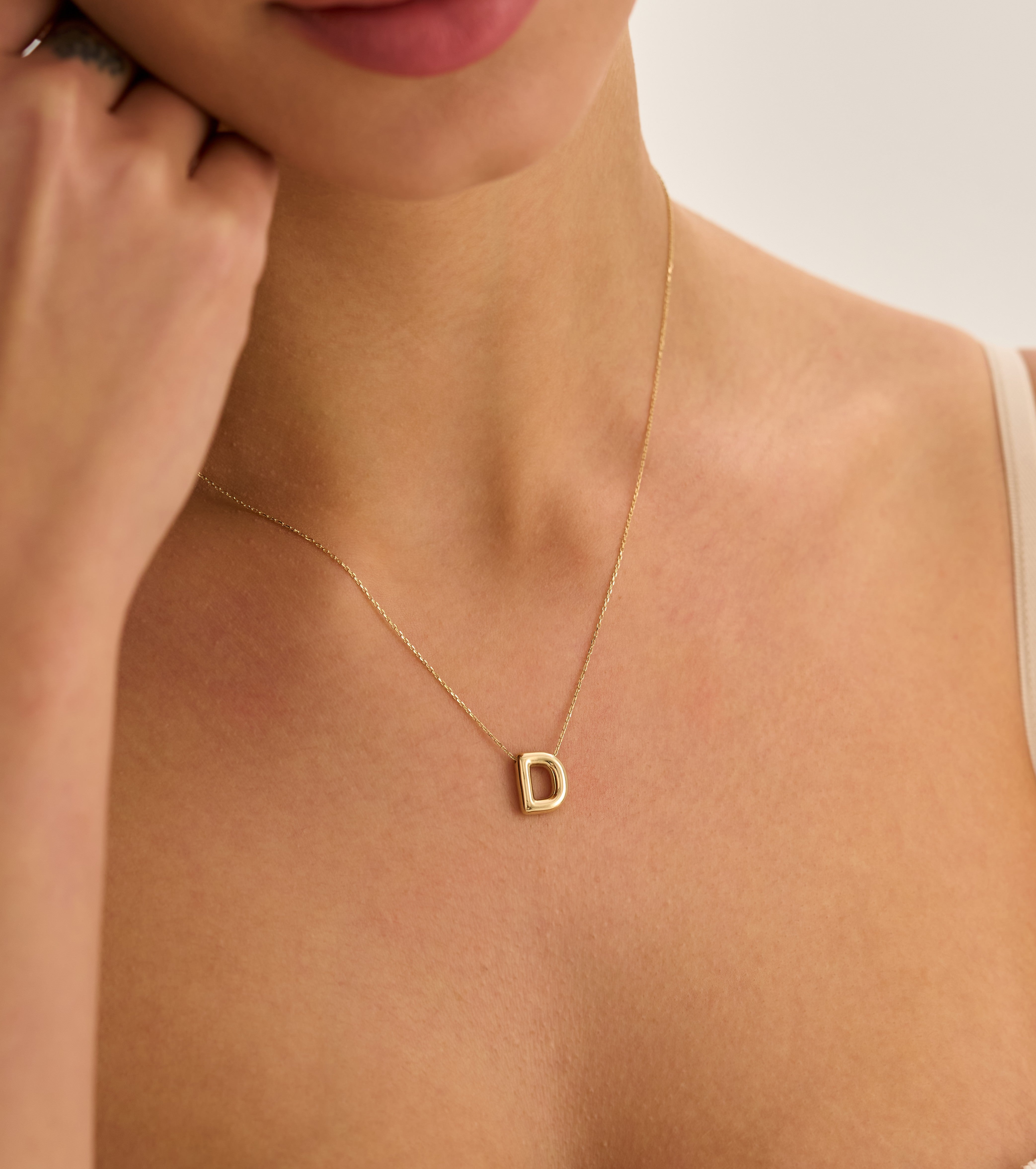 D harfi özel tasarım balon kolye modeli, yaklaşık 2.04 gr ağırlığında 14 Ayar Sarı Altın kullanılarak özel olarak tasarlanmıştır.