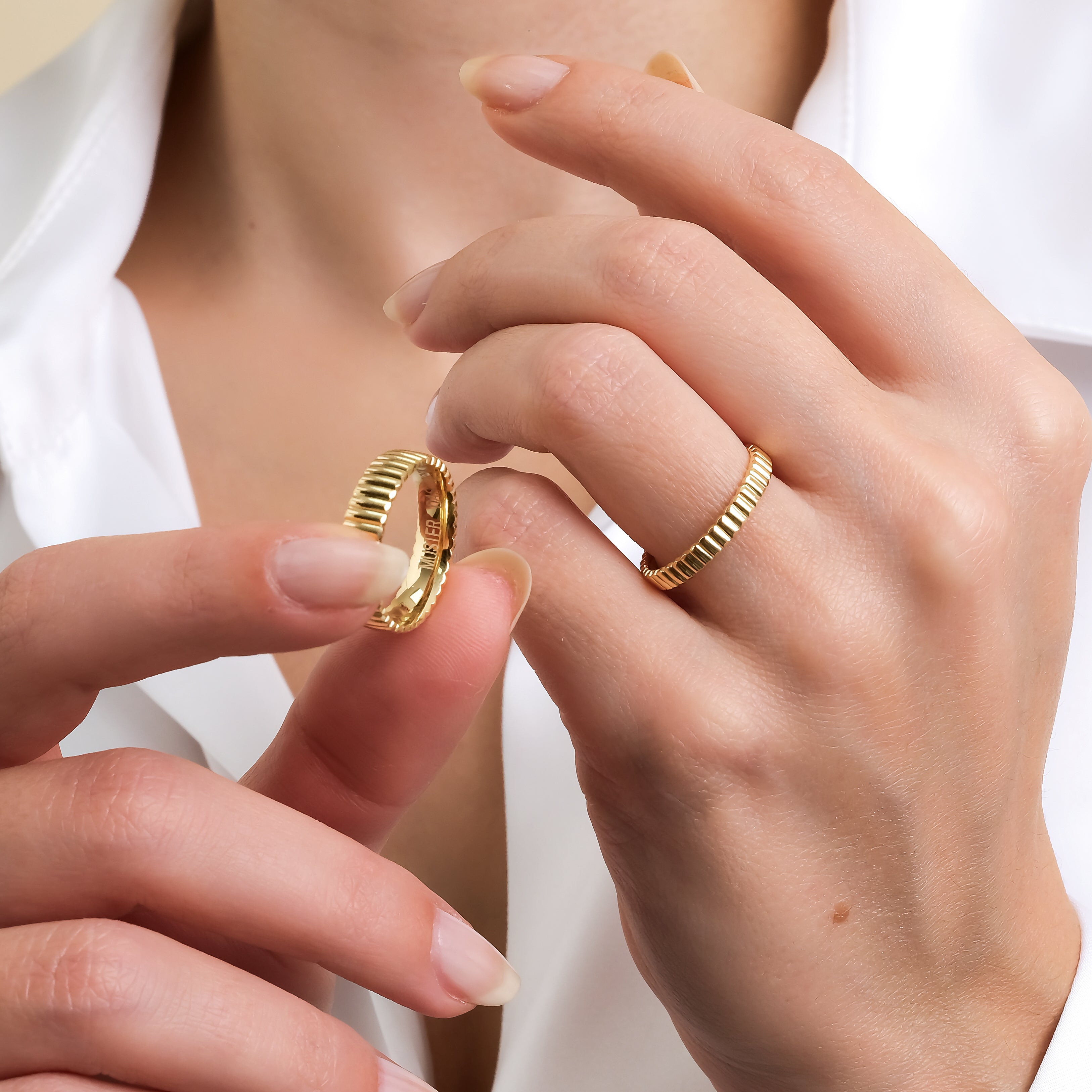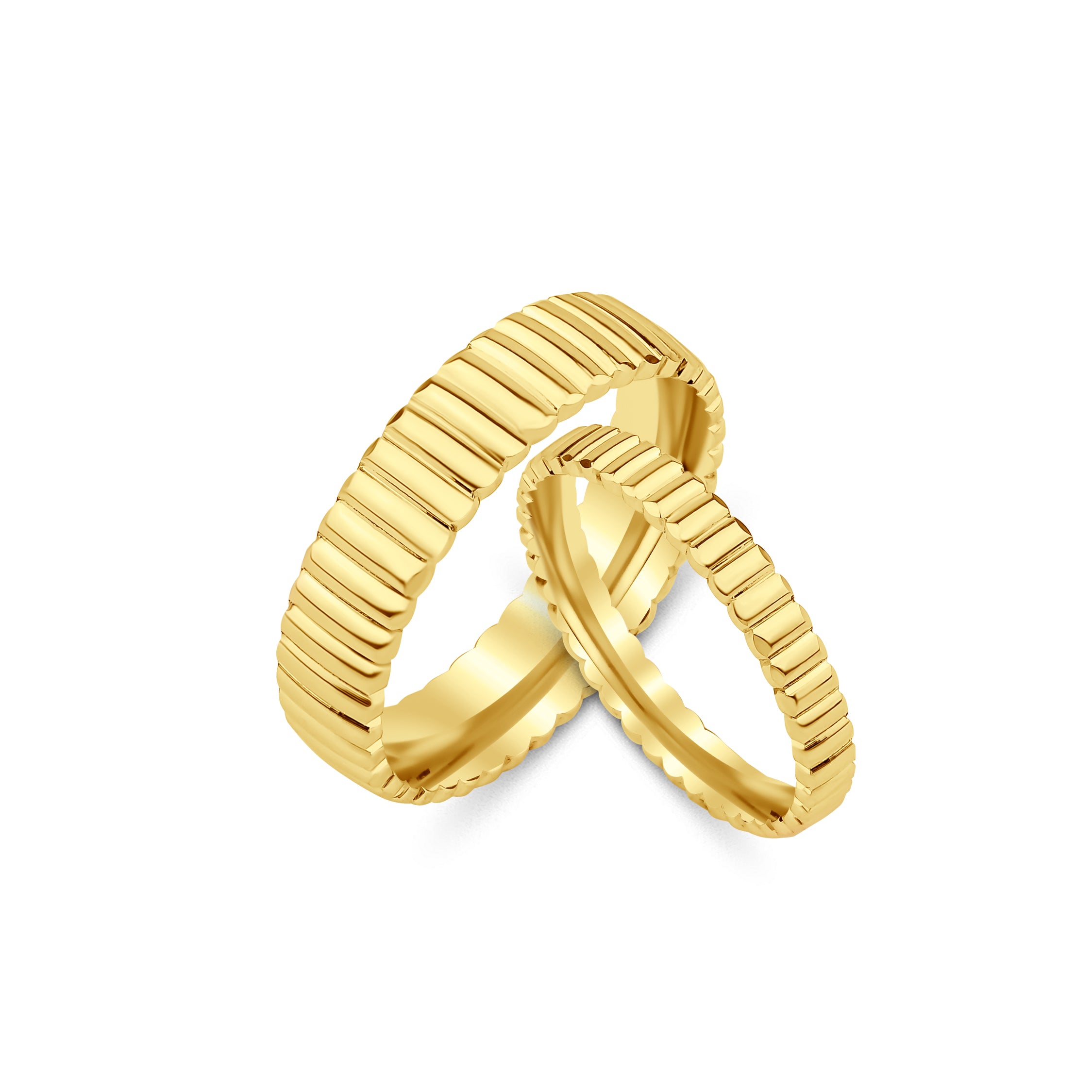 The 3 mm & 4 mm Double Yellow Gold Domed Wedding Ring model is specially designed using 14 Carat Yellow Gold weighing approximately 6.58 gr.