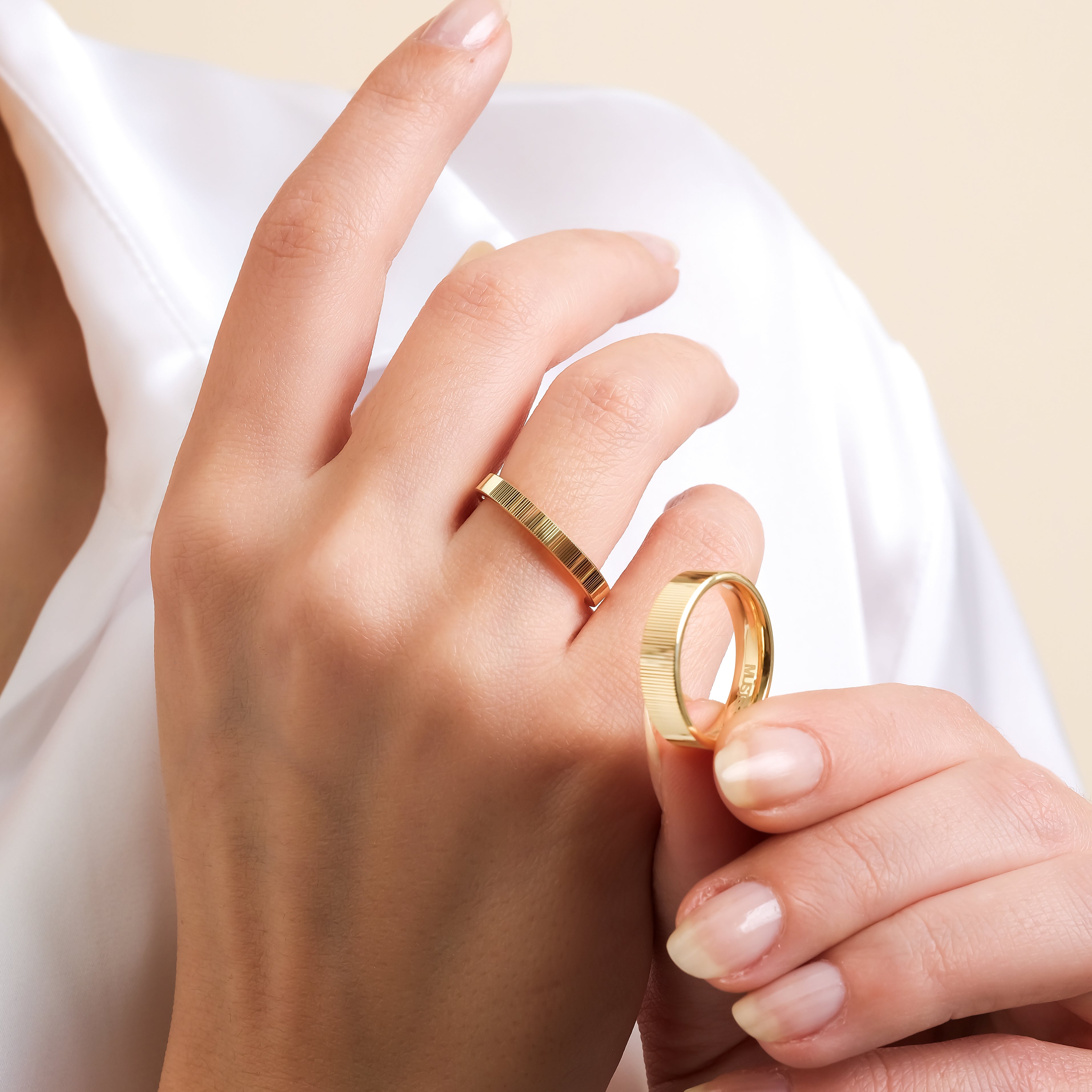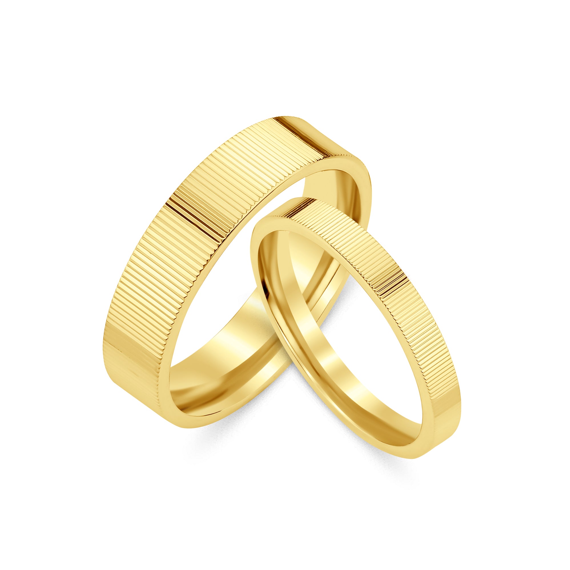 3mm & 5mm Pair Yellow Gold Plain Cut Wedding Ring - RNF01045