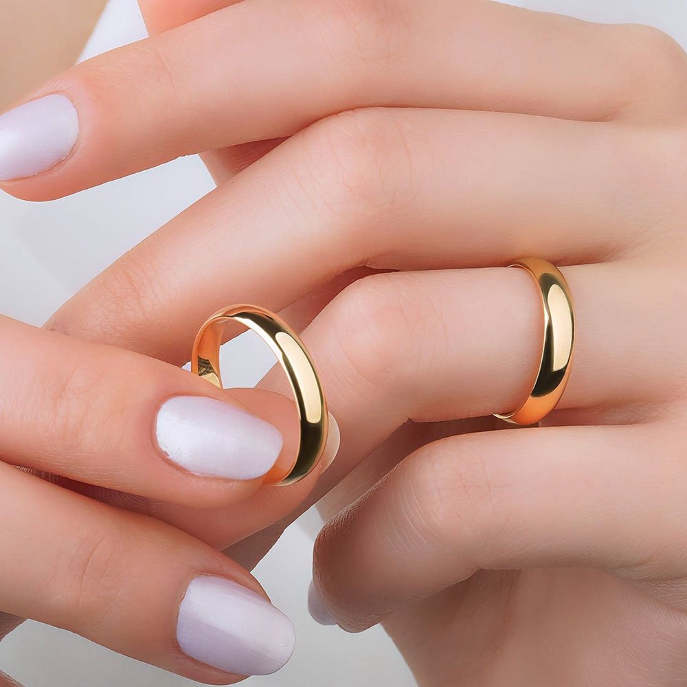 ✬Wedding Ring mm: 4 mm Double Yellow Gold Domed Wedding Ring