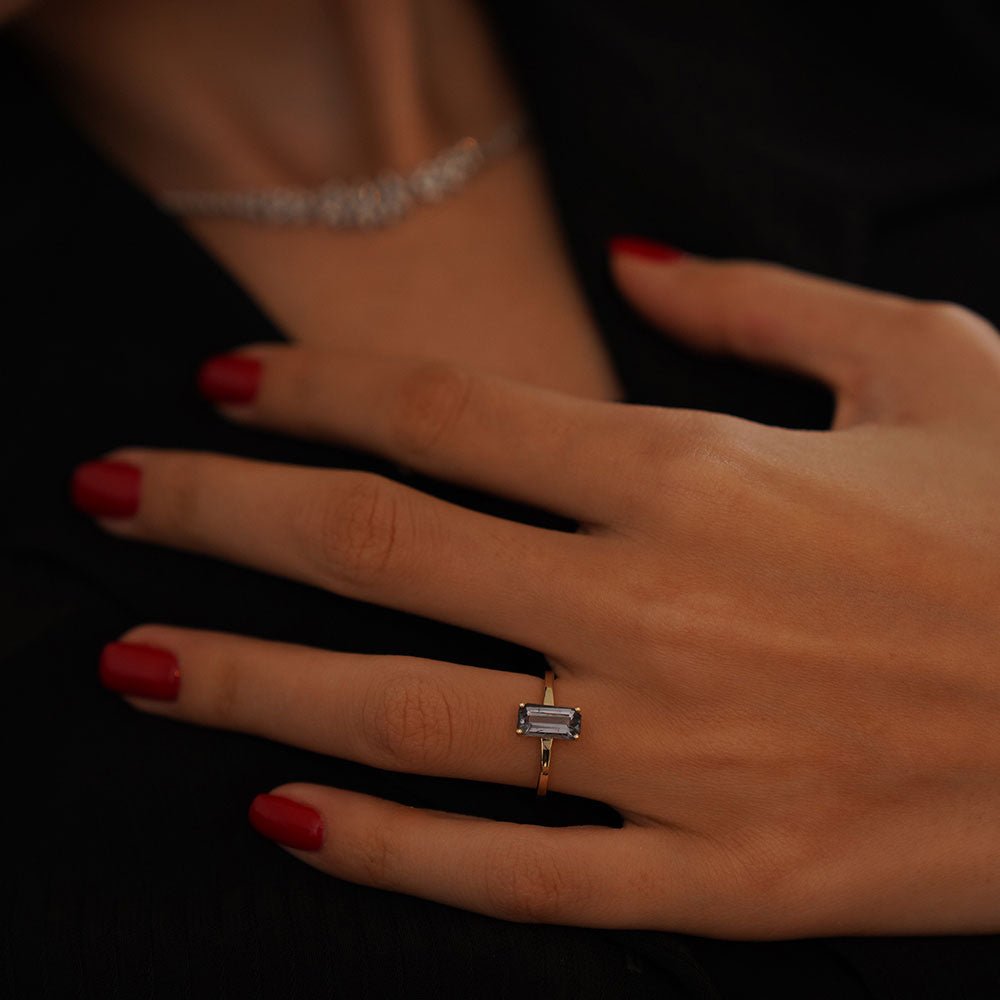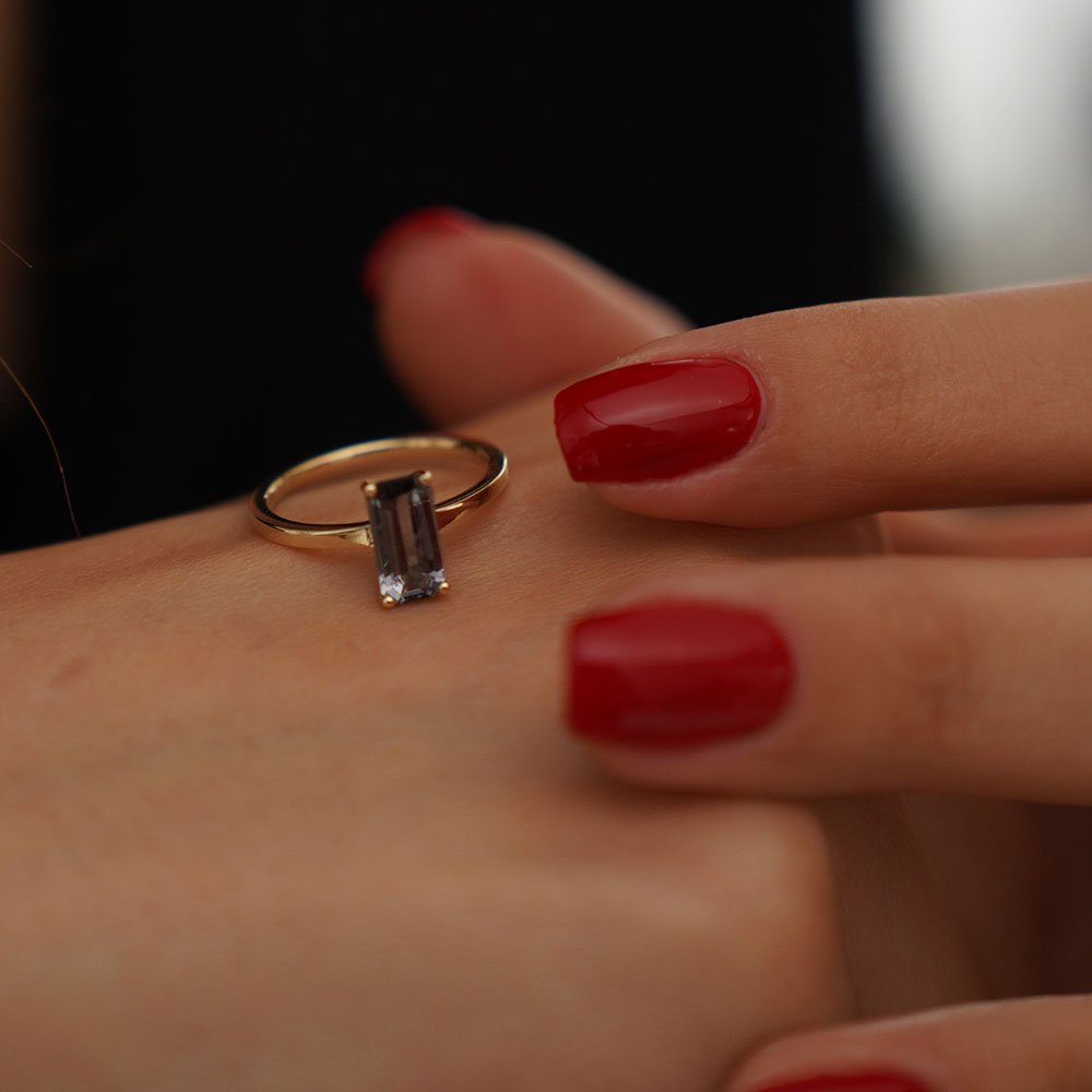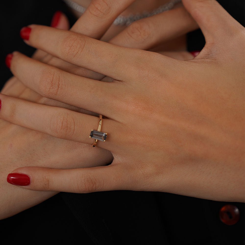 The 0.80 Carat Baguette Cut Spinel Solitaire Ring model is specially designed using 14 Carat Yellow Gold weighing approximately 2.00 gr.
