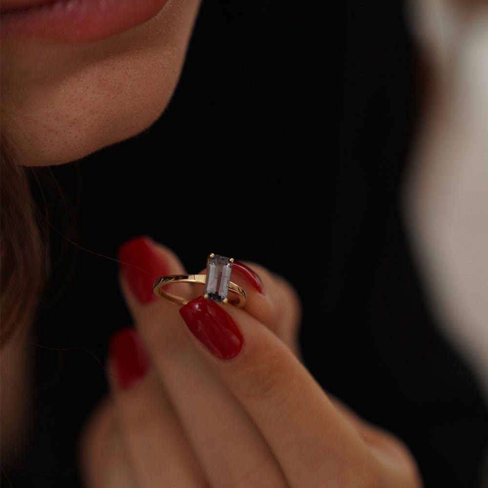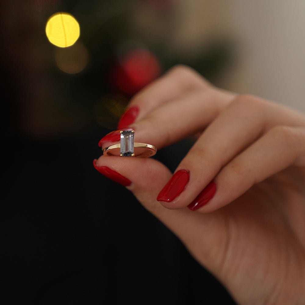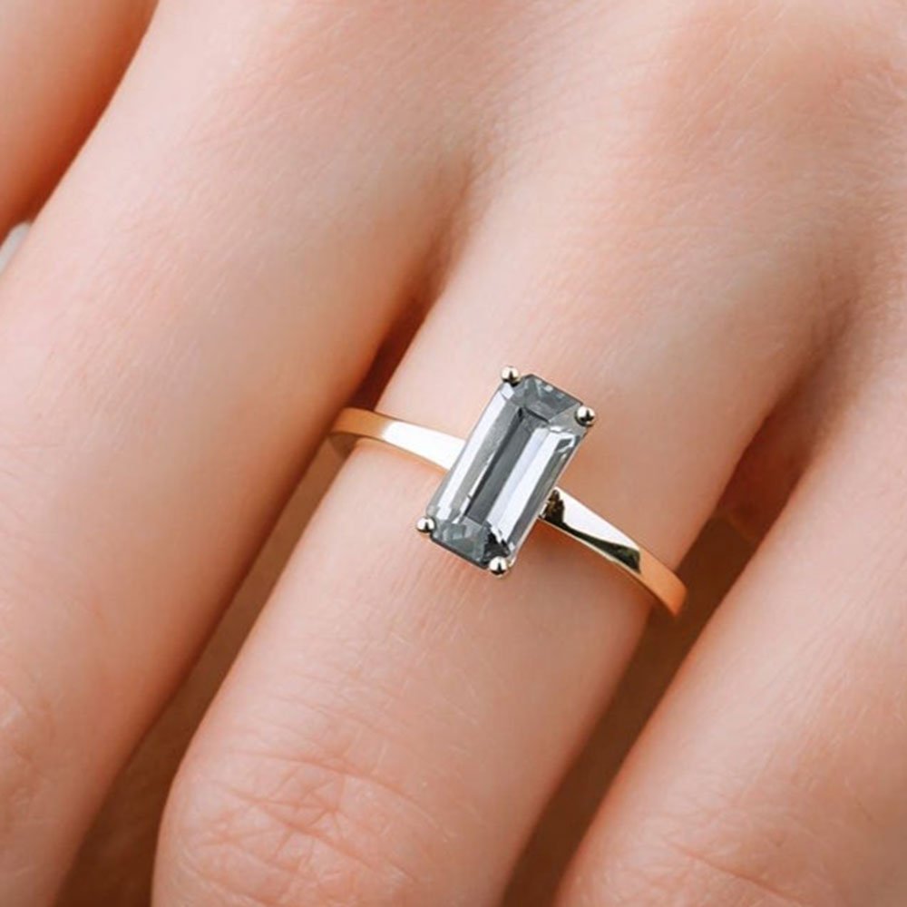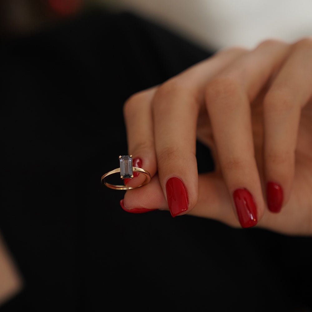 The 0.80 Carat Baguette Cut Spinel Solitaire Ring model is specially designed using 14 Carat Yellow Gold weighing approximately 2.00 gr.
