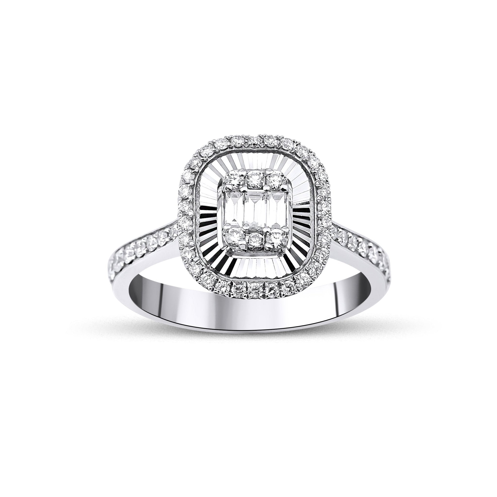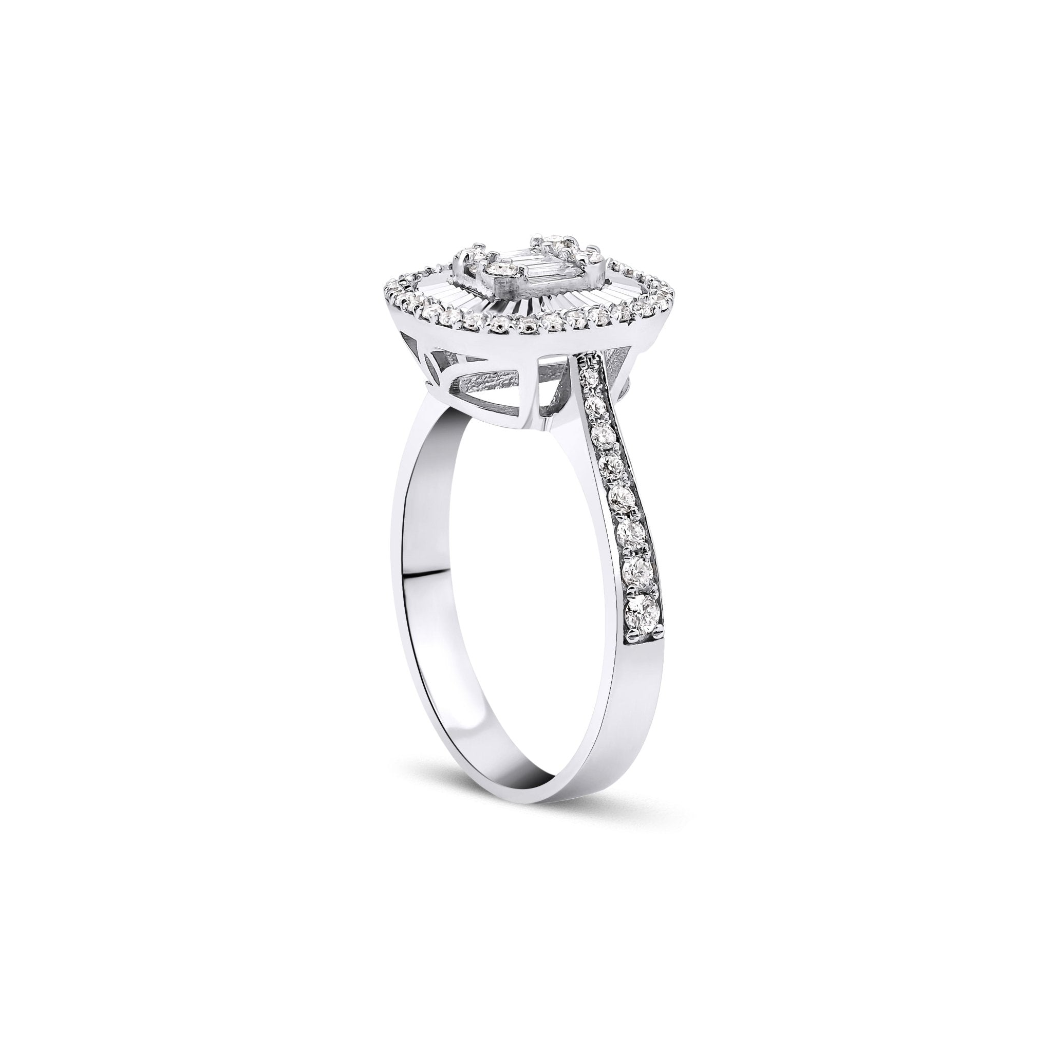 0.32 Carat Round & 0.15 Carat Baguette Diamond Classic Solitaire Ring model is specially designed using 14 Carat White Gold weighing approximately 4.14 gr.