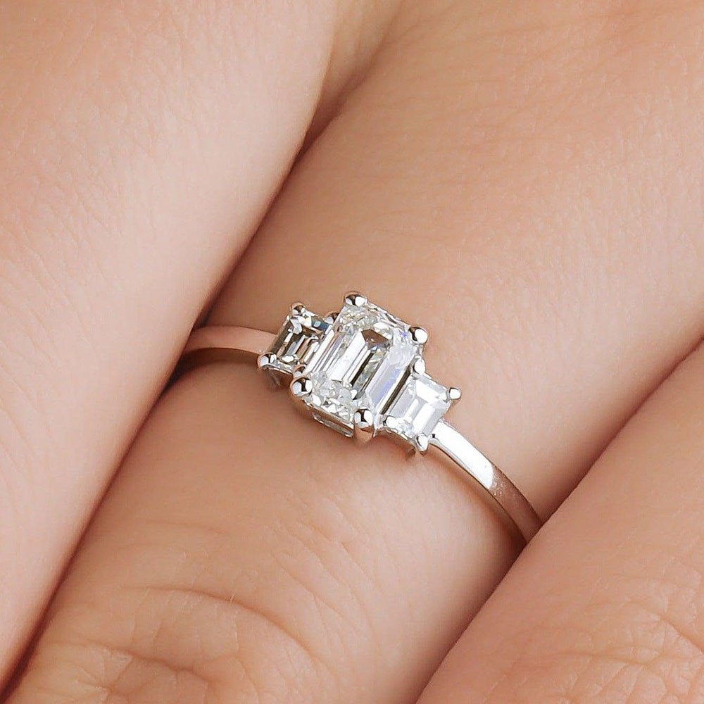 0.40 Carat Emerald Cut Solitaire & 0.20 Carat x2 Baguette Cut Three Stone Tria HRD Diamond Ring - RNF0111