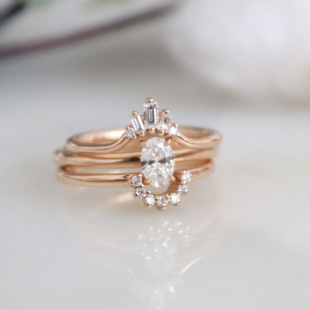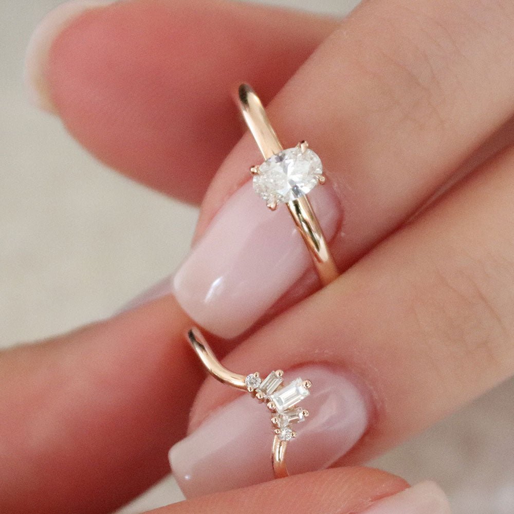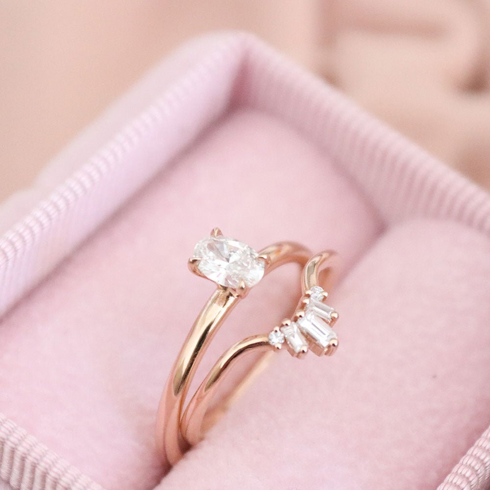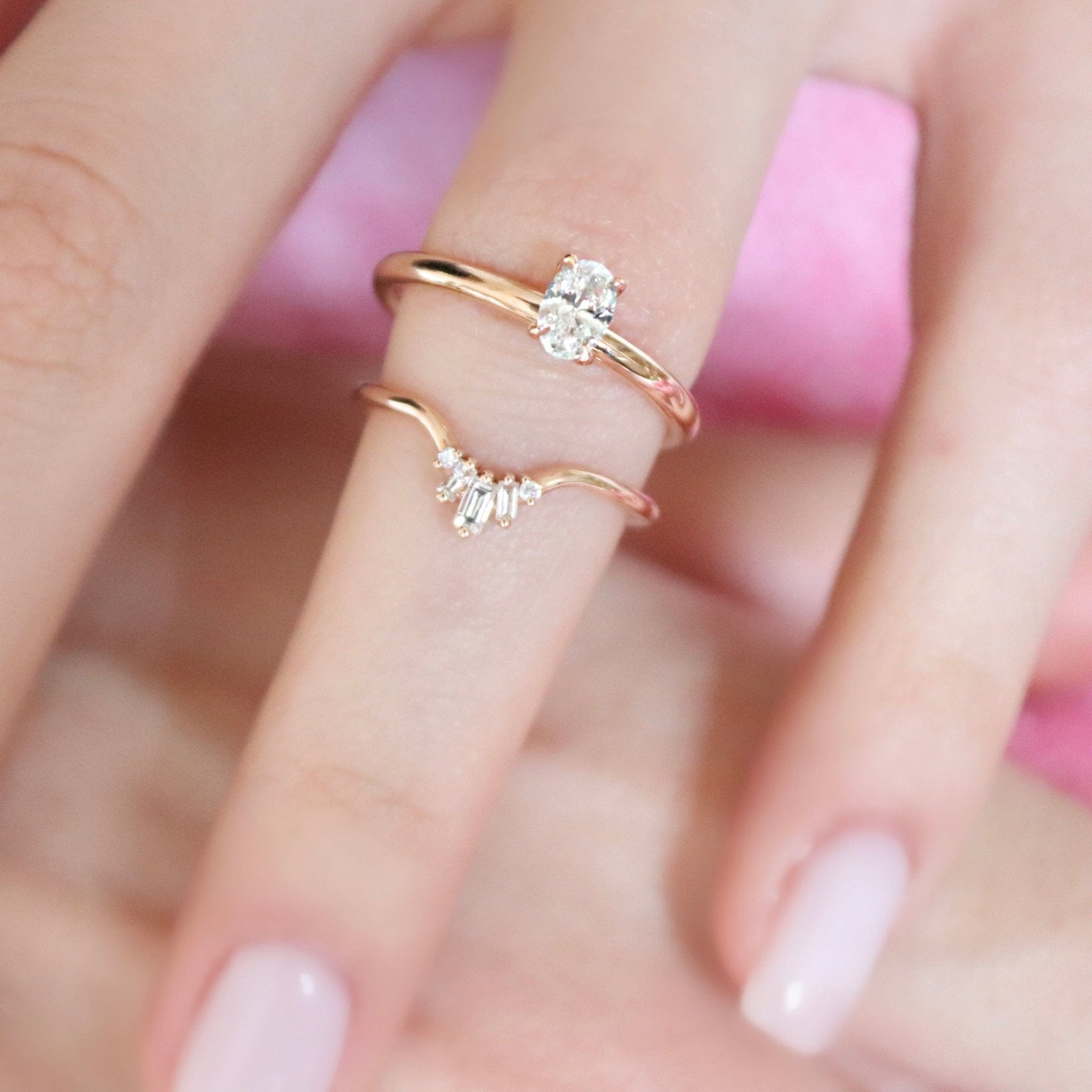 0.30 Carat Oval Cut Solitaire Diamond Ring & 0.14 Carat Baguette Cut Diamond Additional Ring model is specially designed using 14 Carat Rose Gold weighing approximately 1.56 gr.
