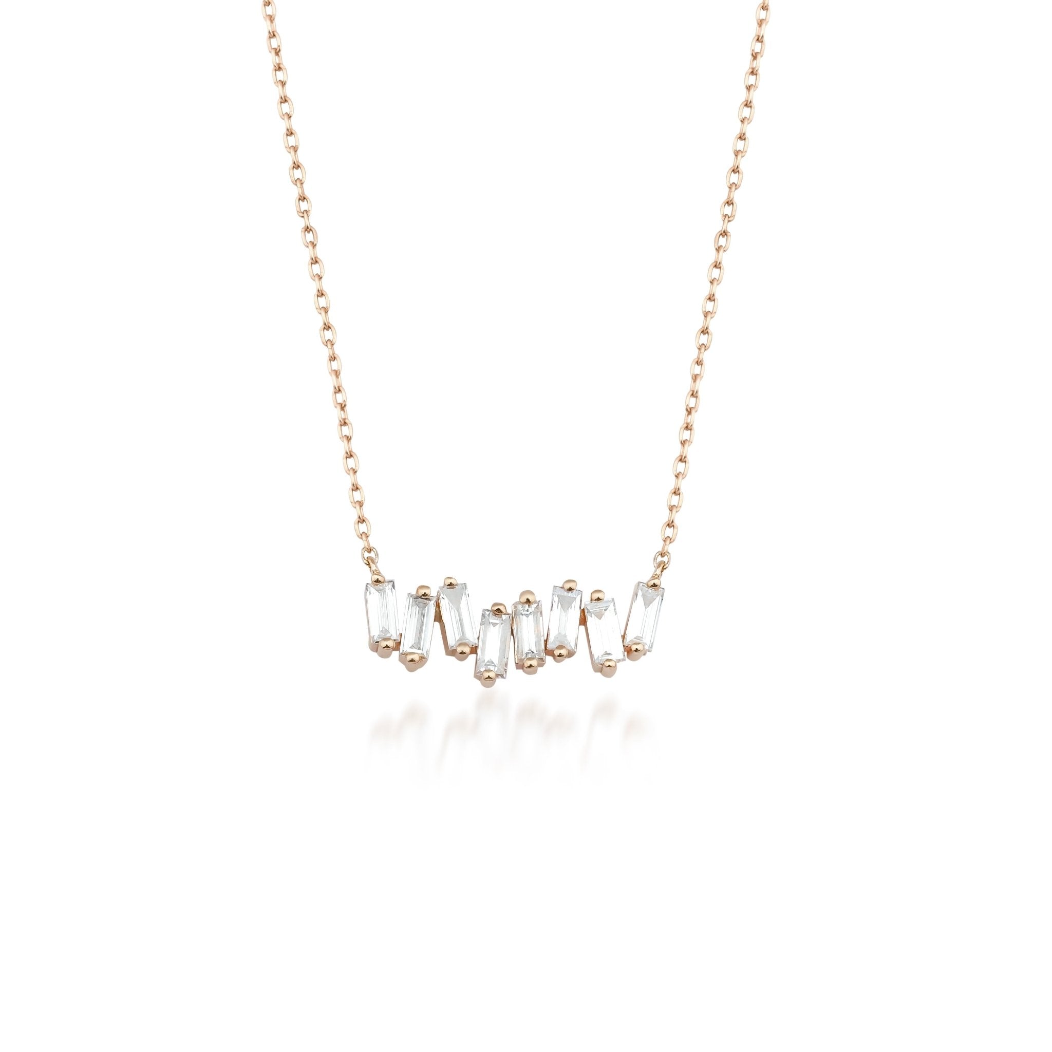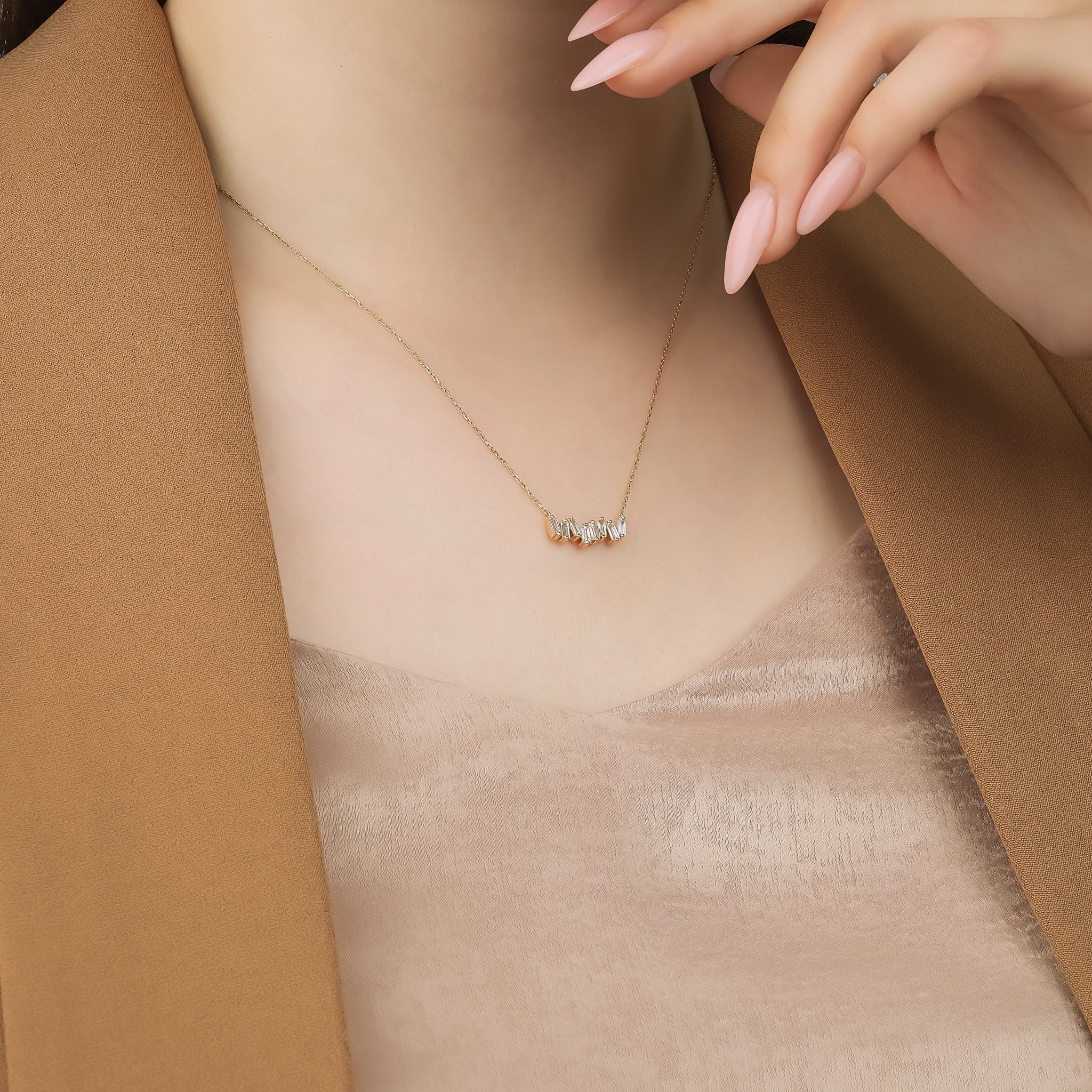 The 0.40 Carat Baguette Cut Diamond Necklace model was specially designed using 14 Carat Rose Gold weighing approximately 3.70 gr.