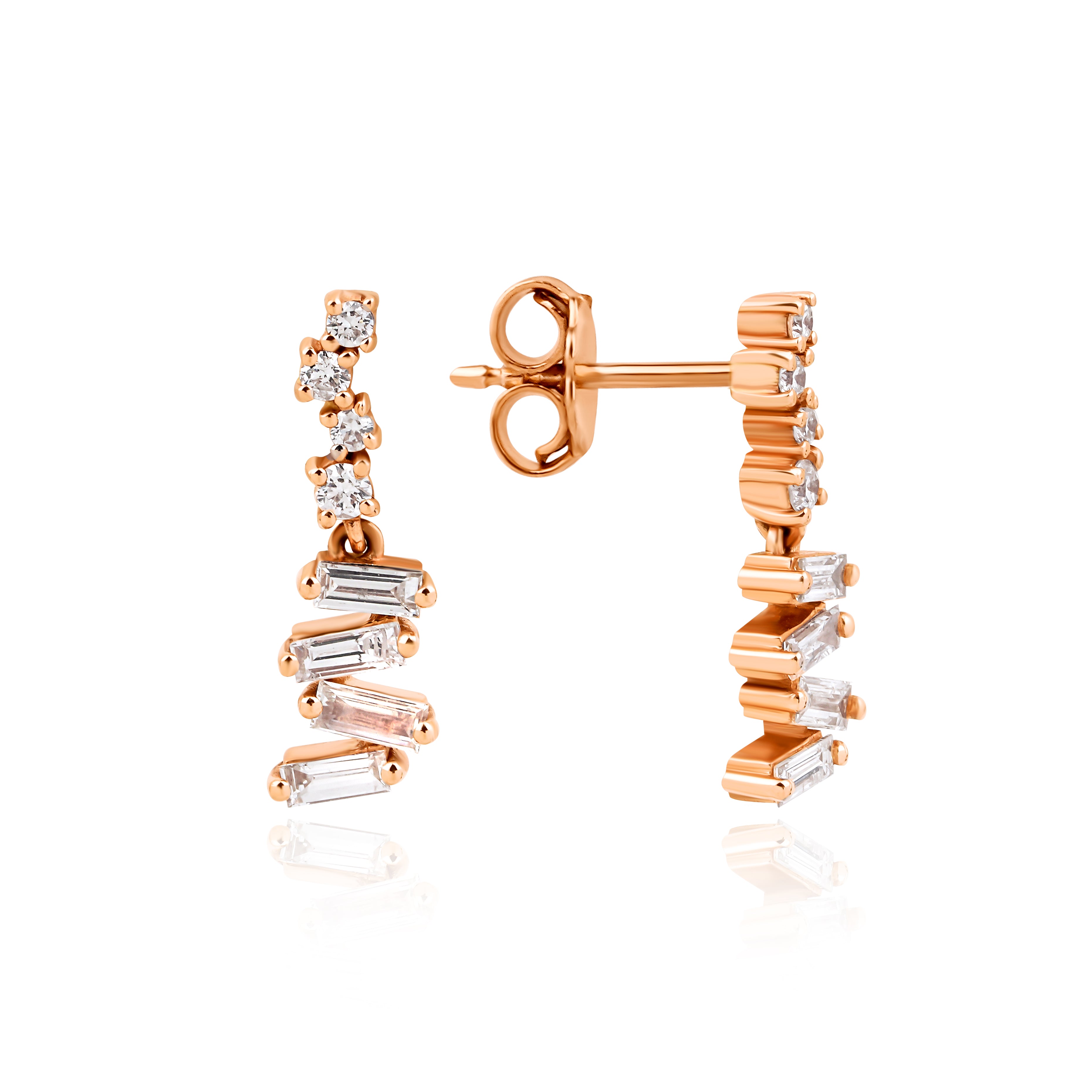 The 0.48 Carat Baguette Diamond Special Design Earring model is specially designed using 14 Carat Rose Gold weighing approximately 3.65 gr.
