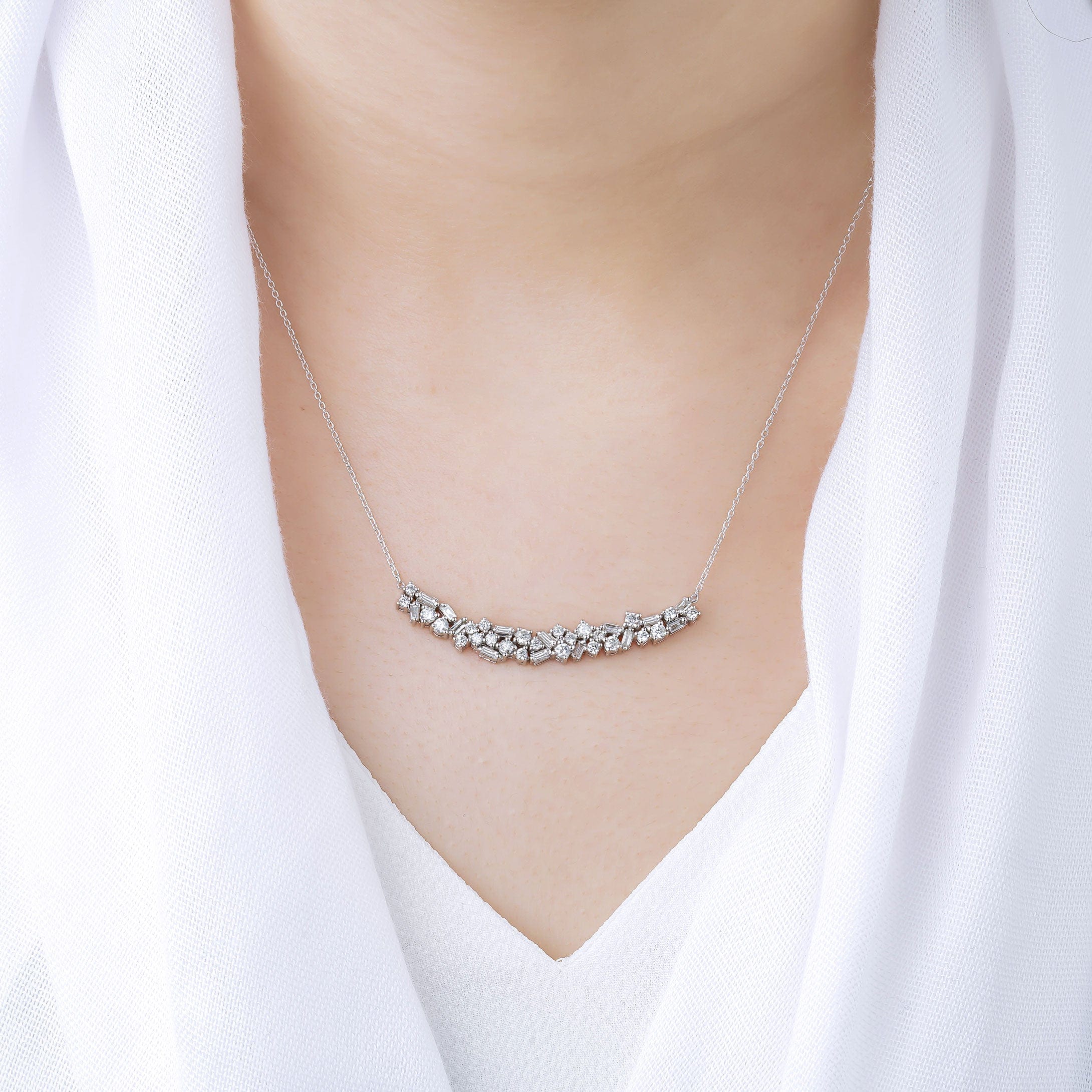 The 1.56 Carat Baguette Cut Diamond Necklace model was specially designed using 14 Carat White Gold weighing approximately 6.86 grams.