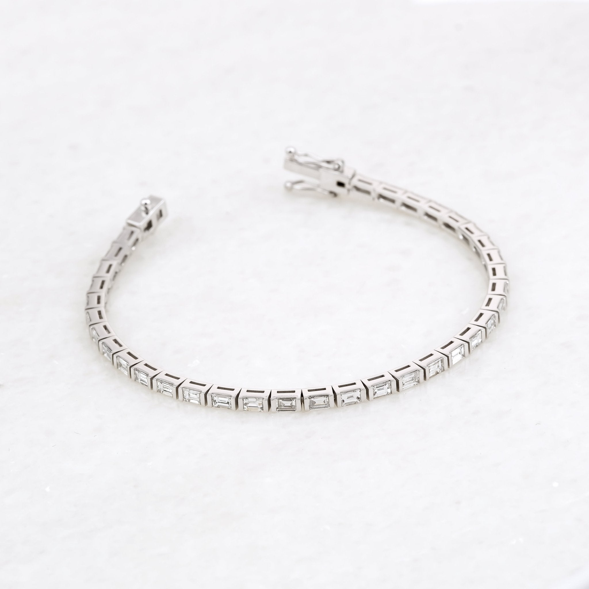 The 1.90 Carat Baguette Cut Design Bracelet model is specially designed using 14 Carat White Gold weighing approximately 14.00 gr.