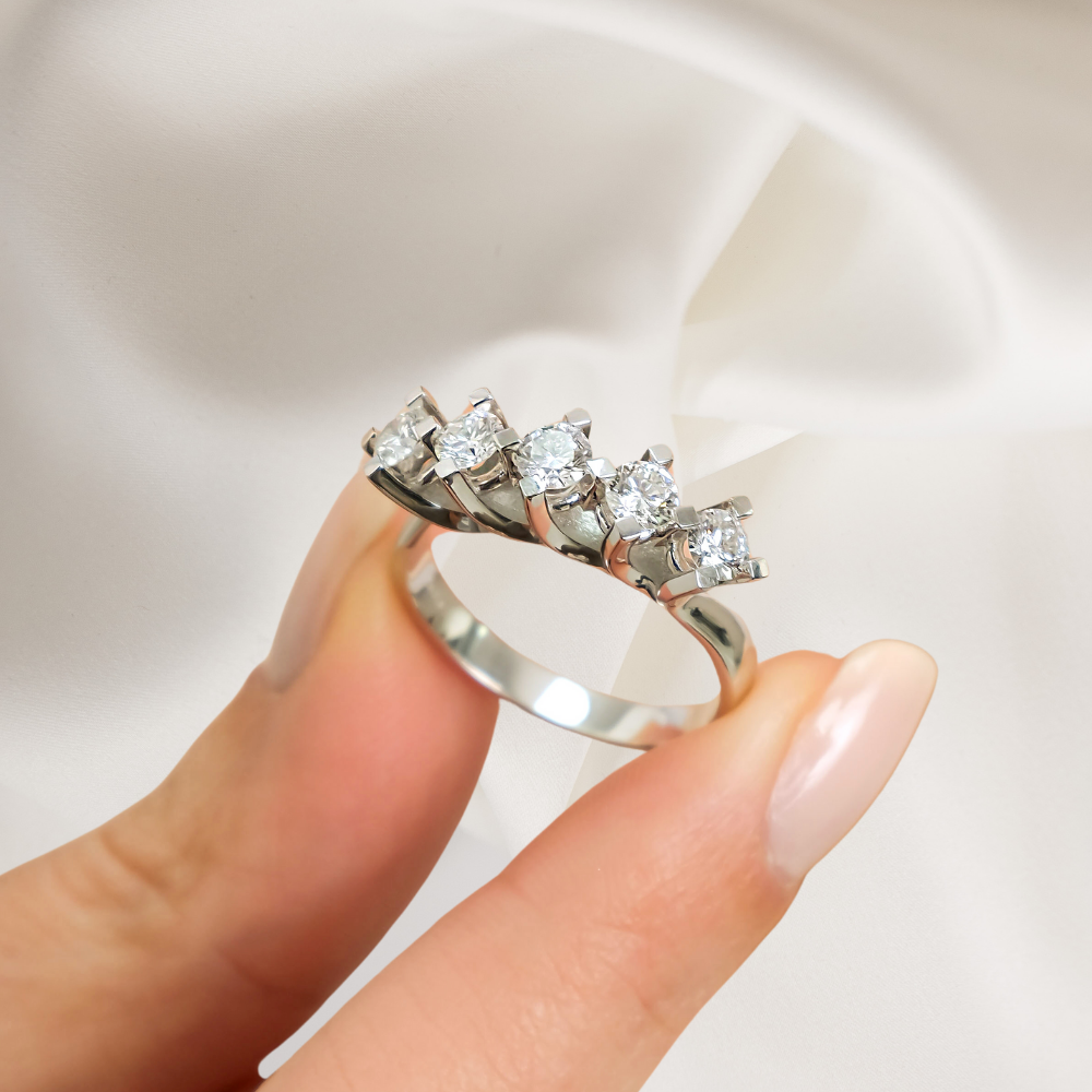 1.50 Carat Diamond Five Stone Classic Solitaire Ring The model is specially designed using 14K White Gold weighing approximately 3.47 grams.