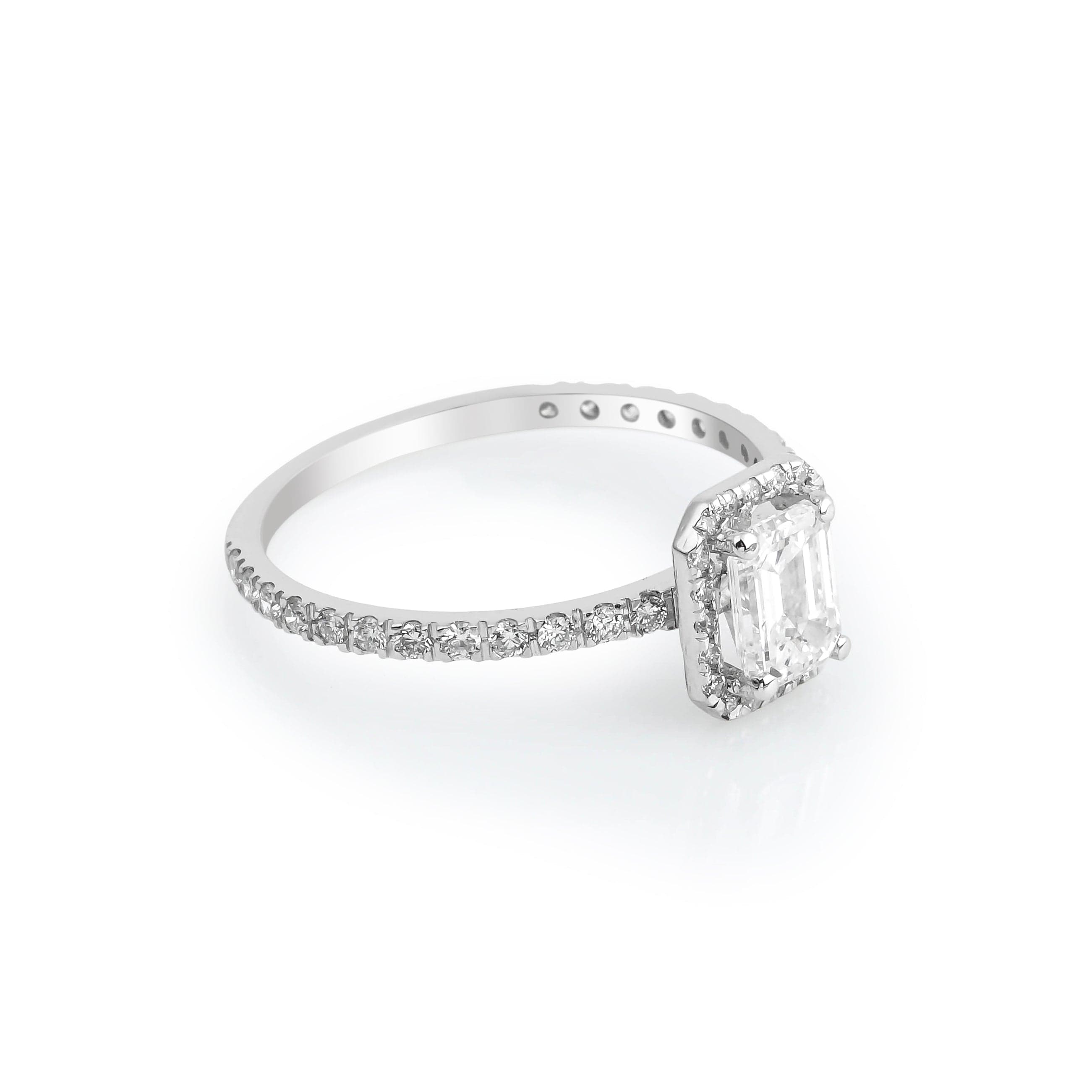 1.08 Carat Emerald Cut GIA/HRD Certified Solitaire Diamond Ring model is specially designed using 14 Carat White Gold weighing approximately 3.78 grams.