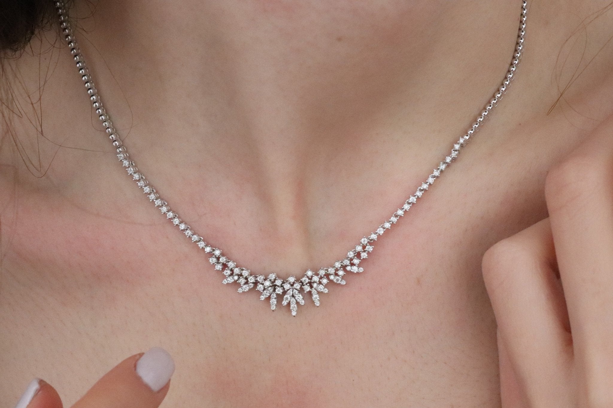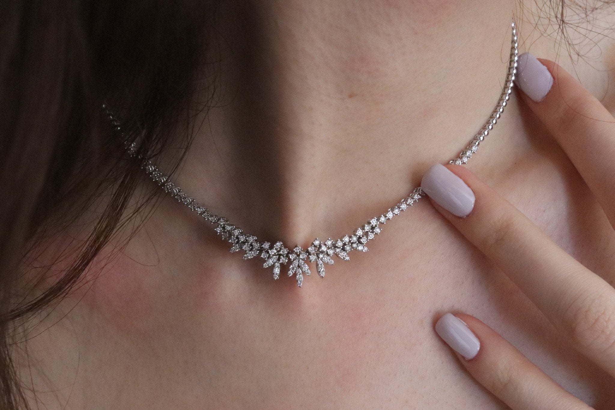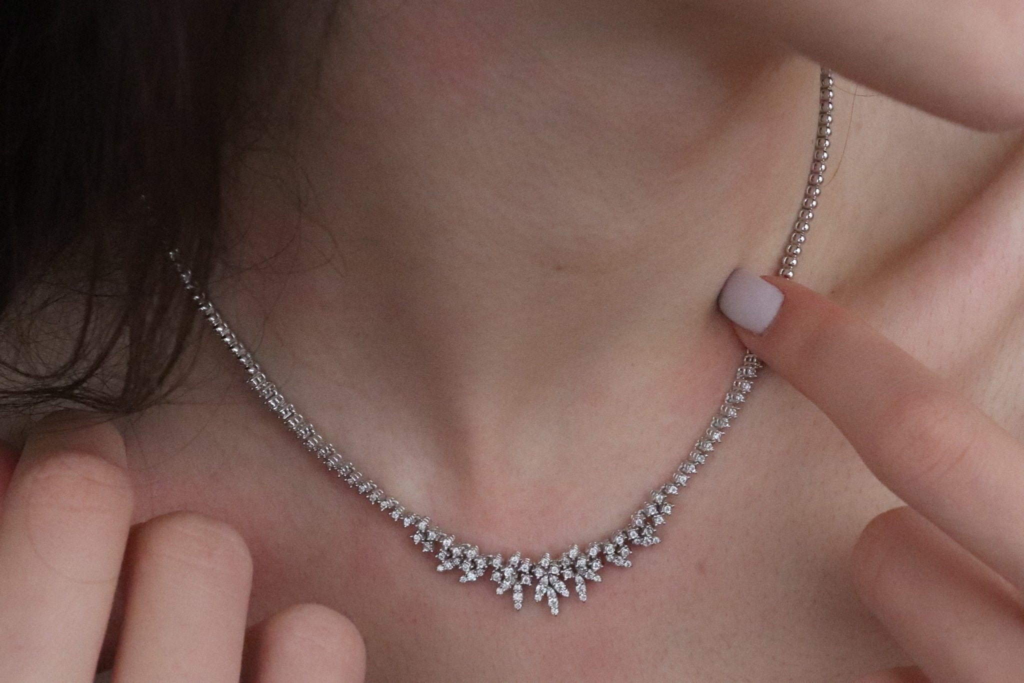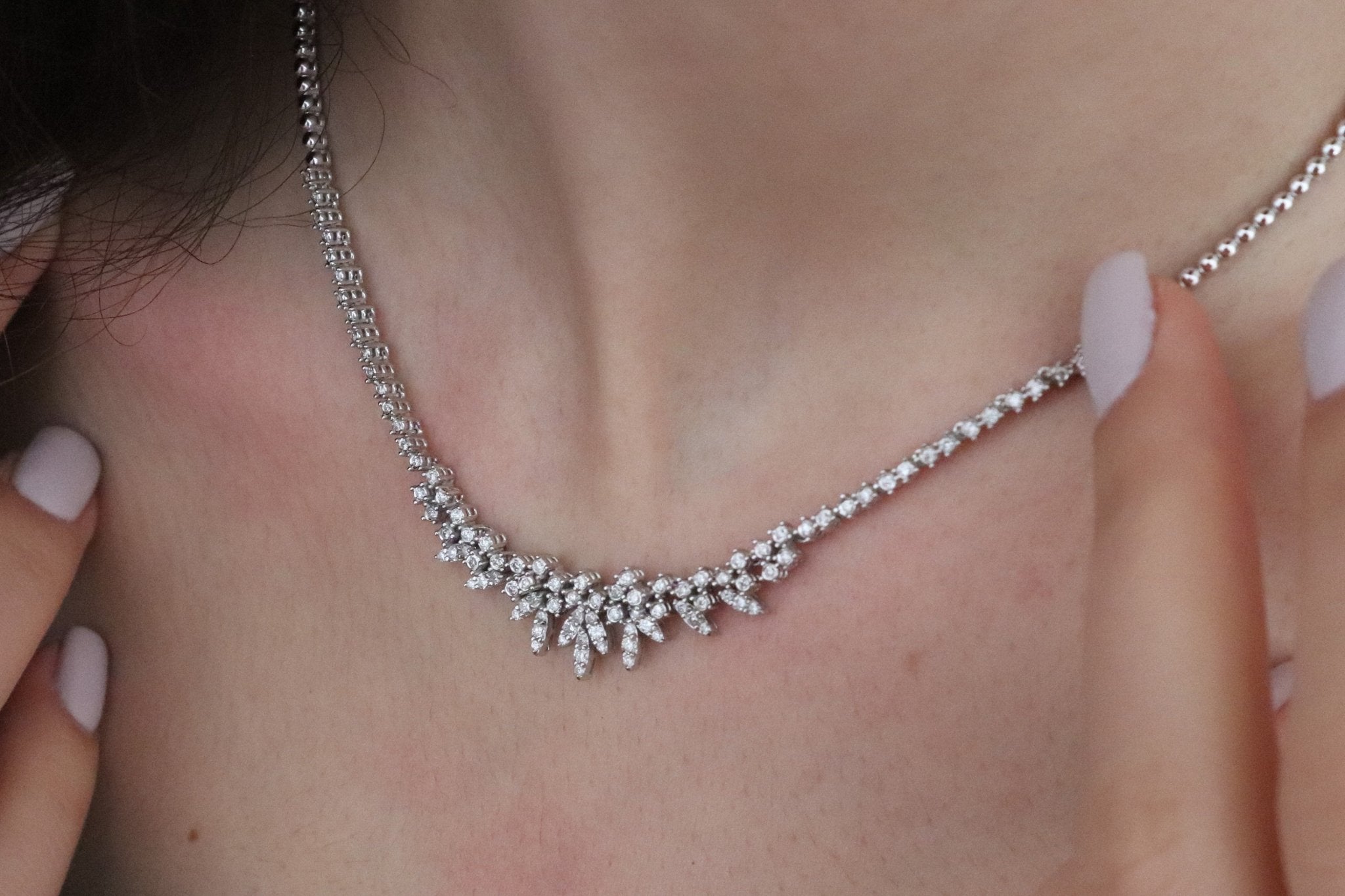 This magnificent Diamond Necklace can be designed in different options. You can contact us to create your own design or make special requests. The weight of the Diamond Necklace product may vary depending on the dimensions you choose.