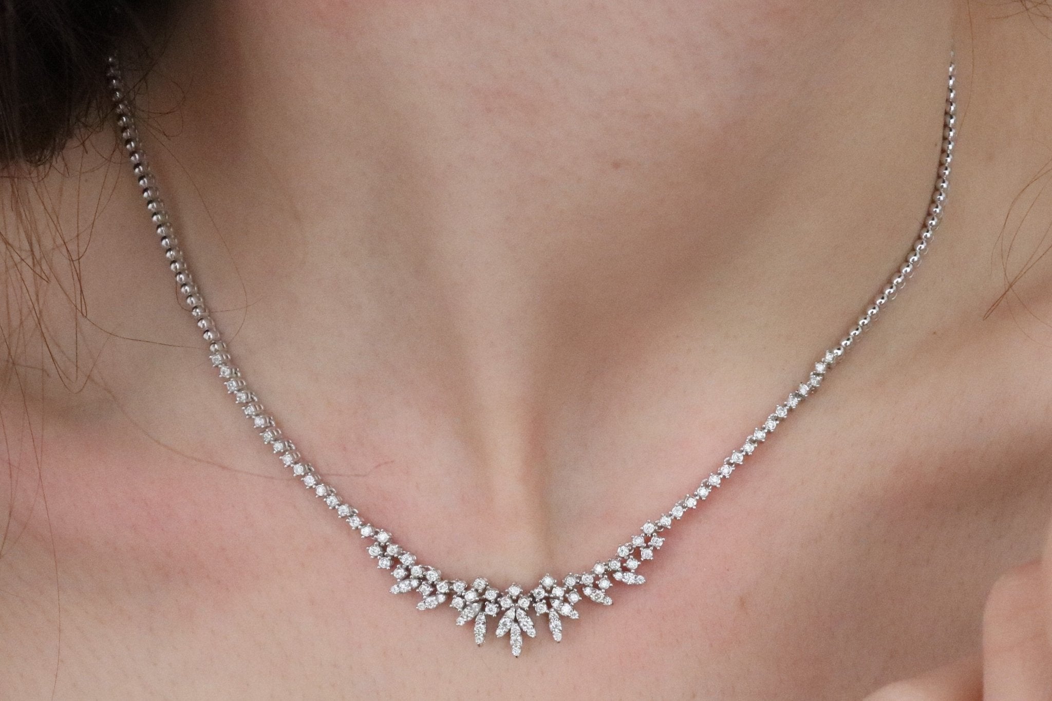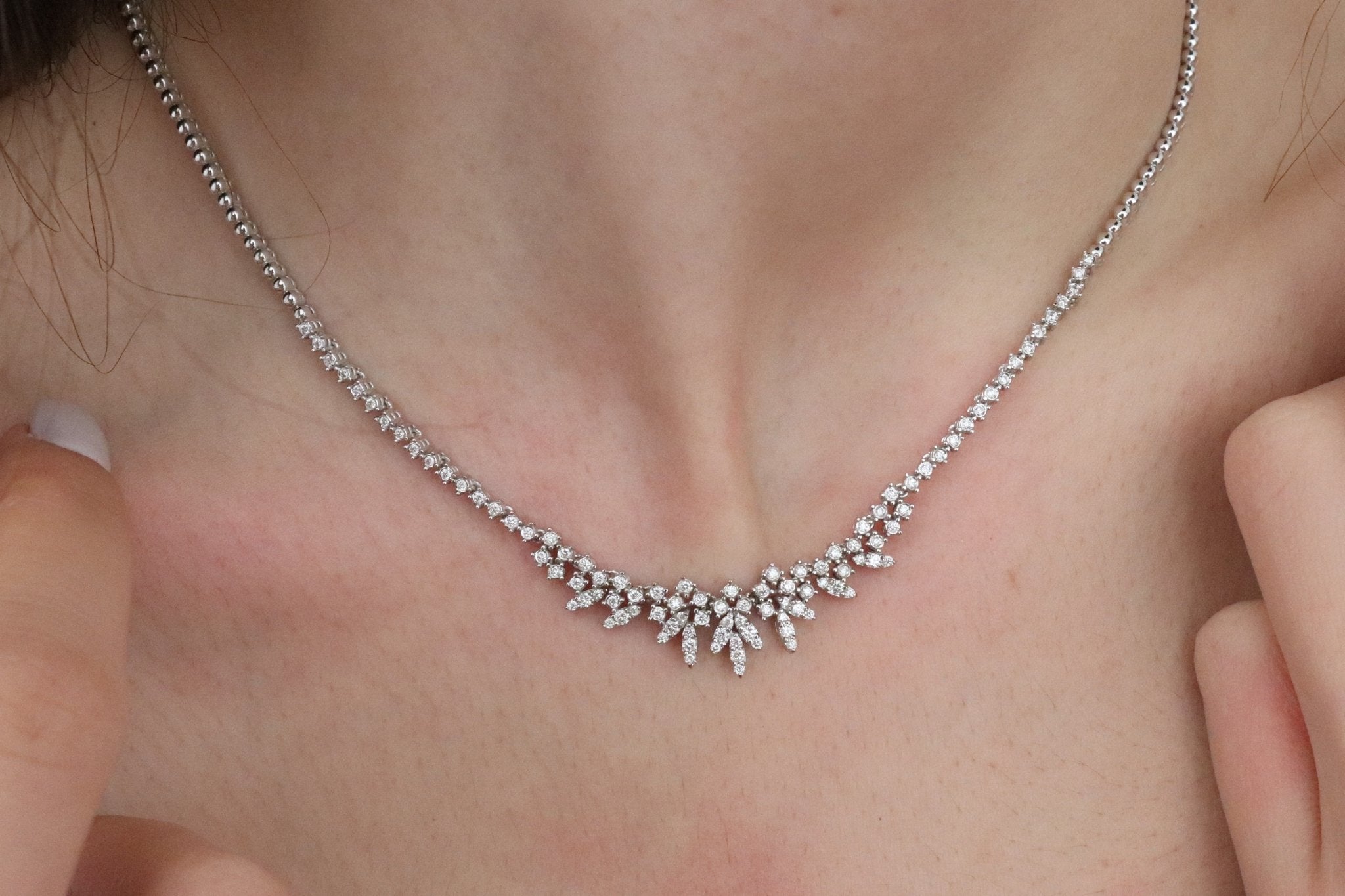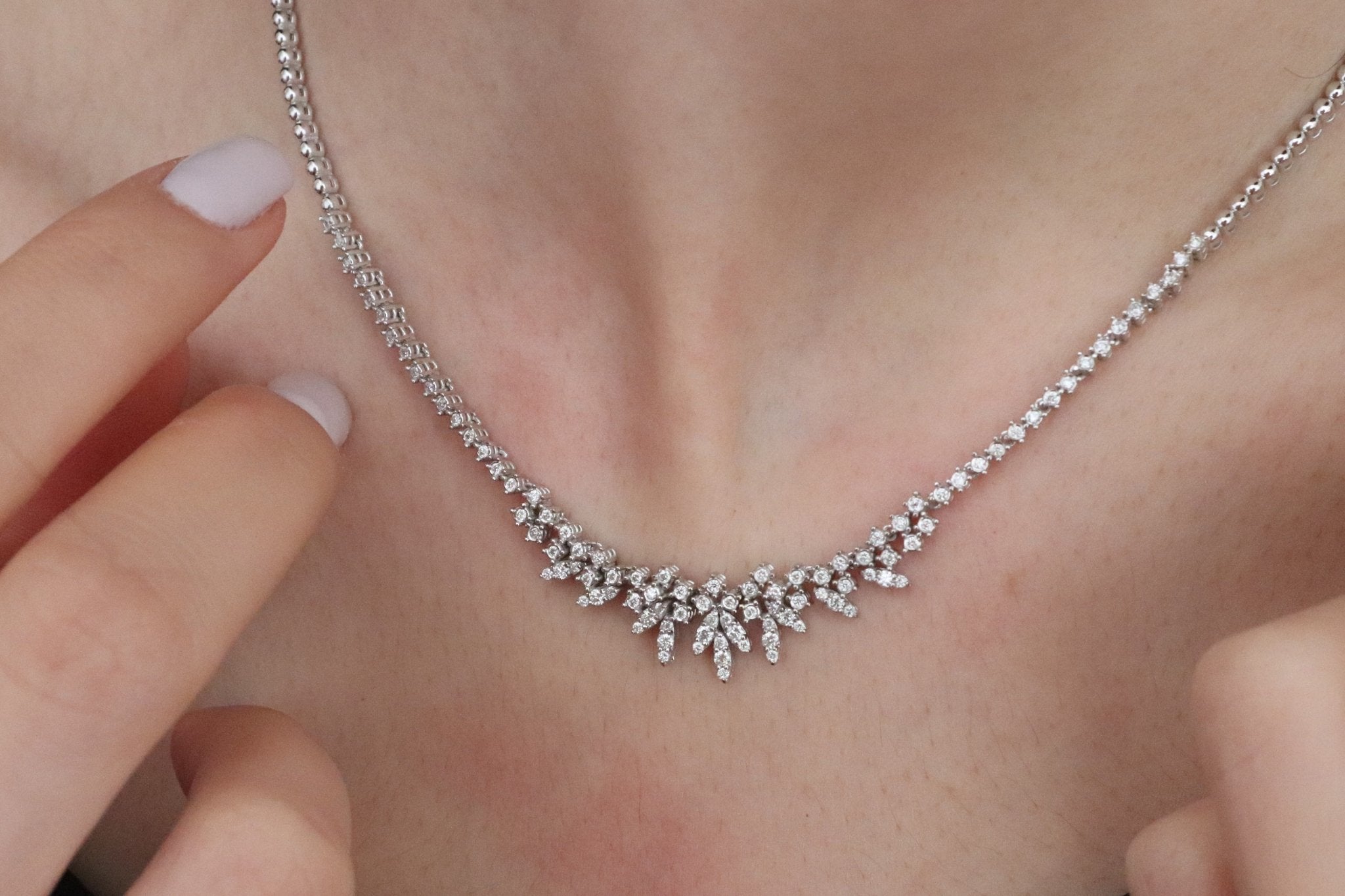 This magnificent Diamond Necklace can be designed in different options. You can contact us to create your own design or make special requests. The weight of the Diamond Necklace product may vary depending on the dimensions you choose.