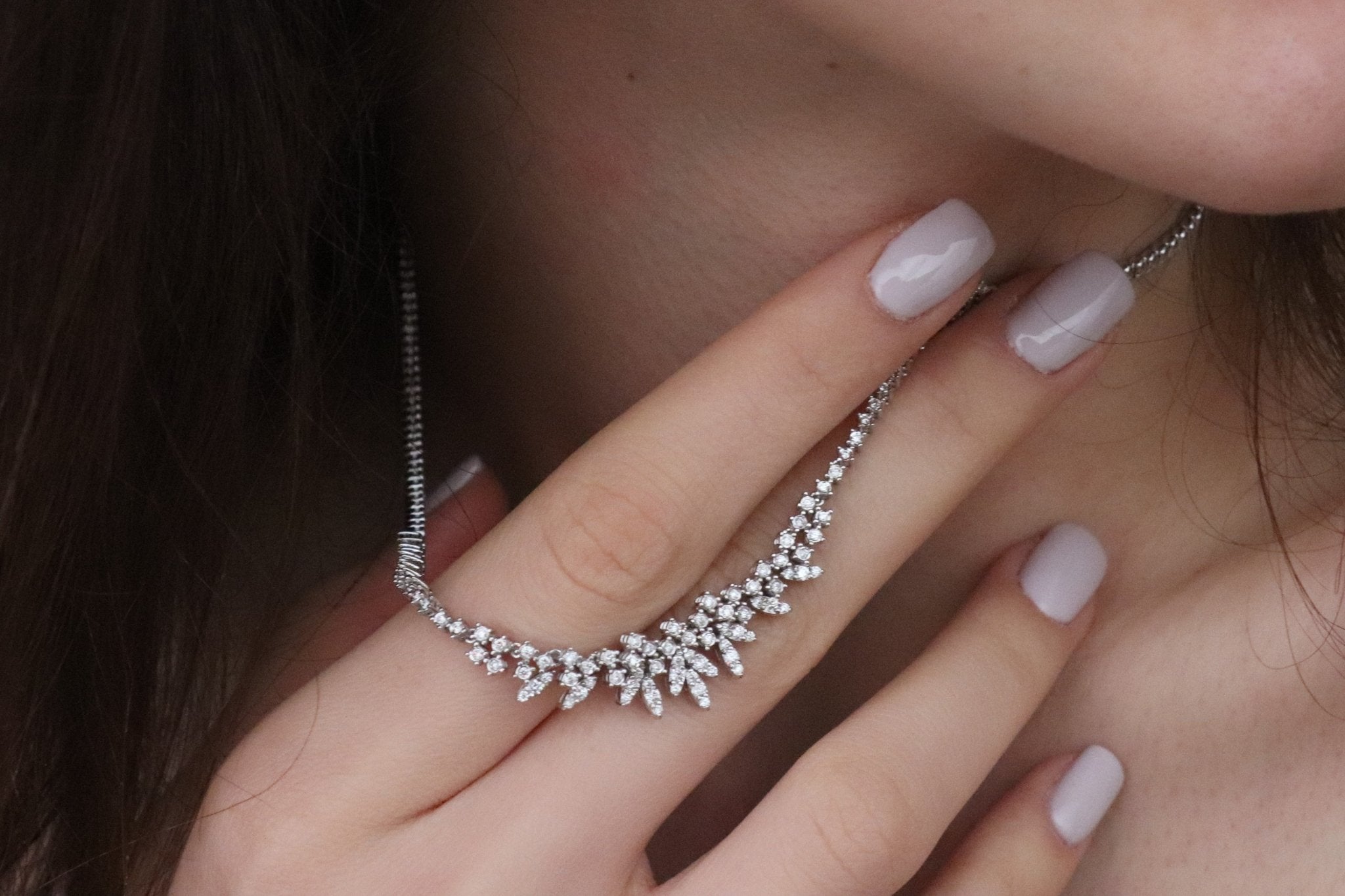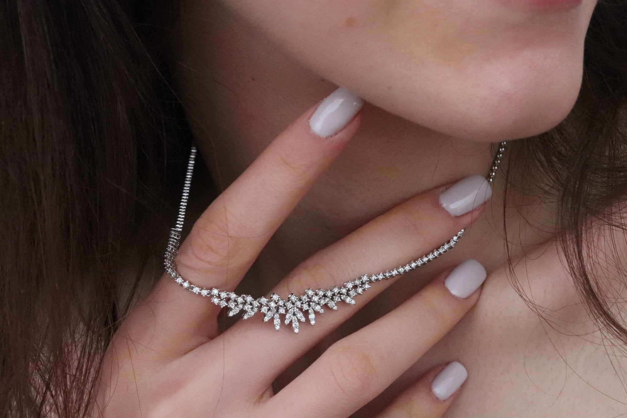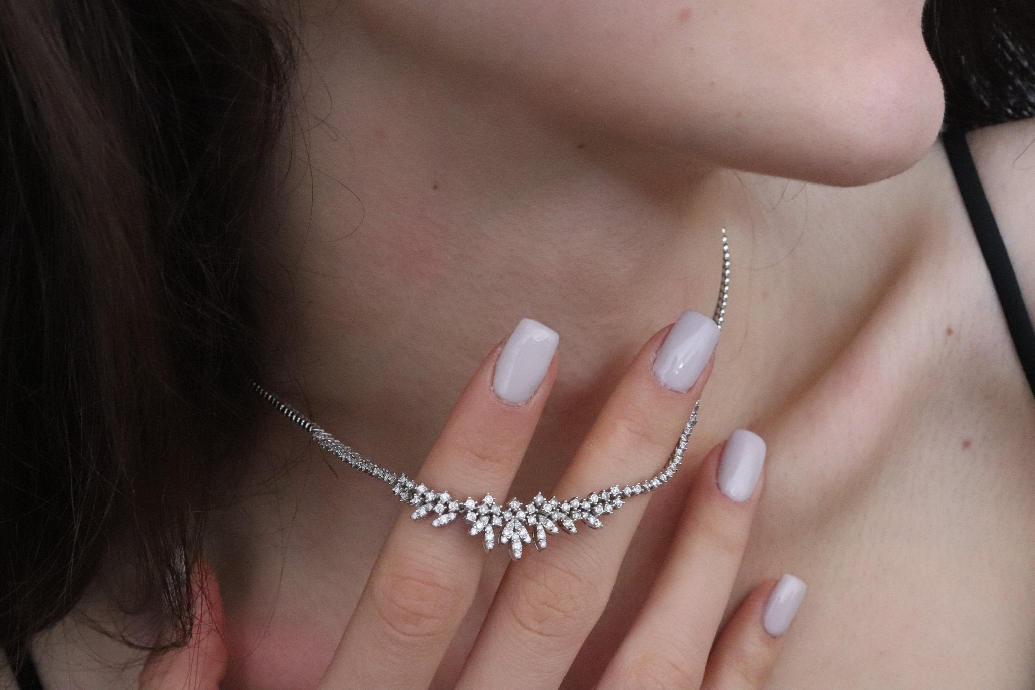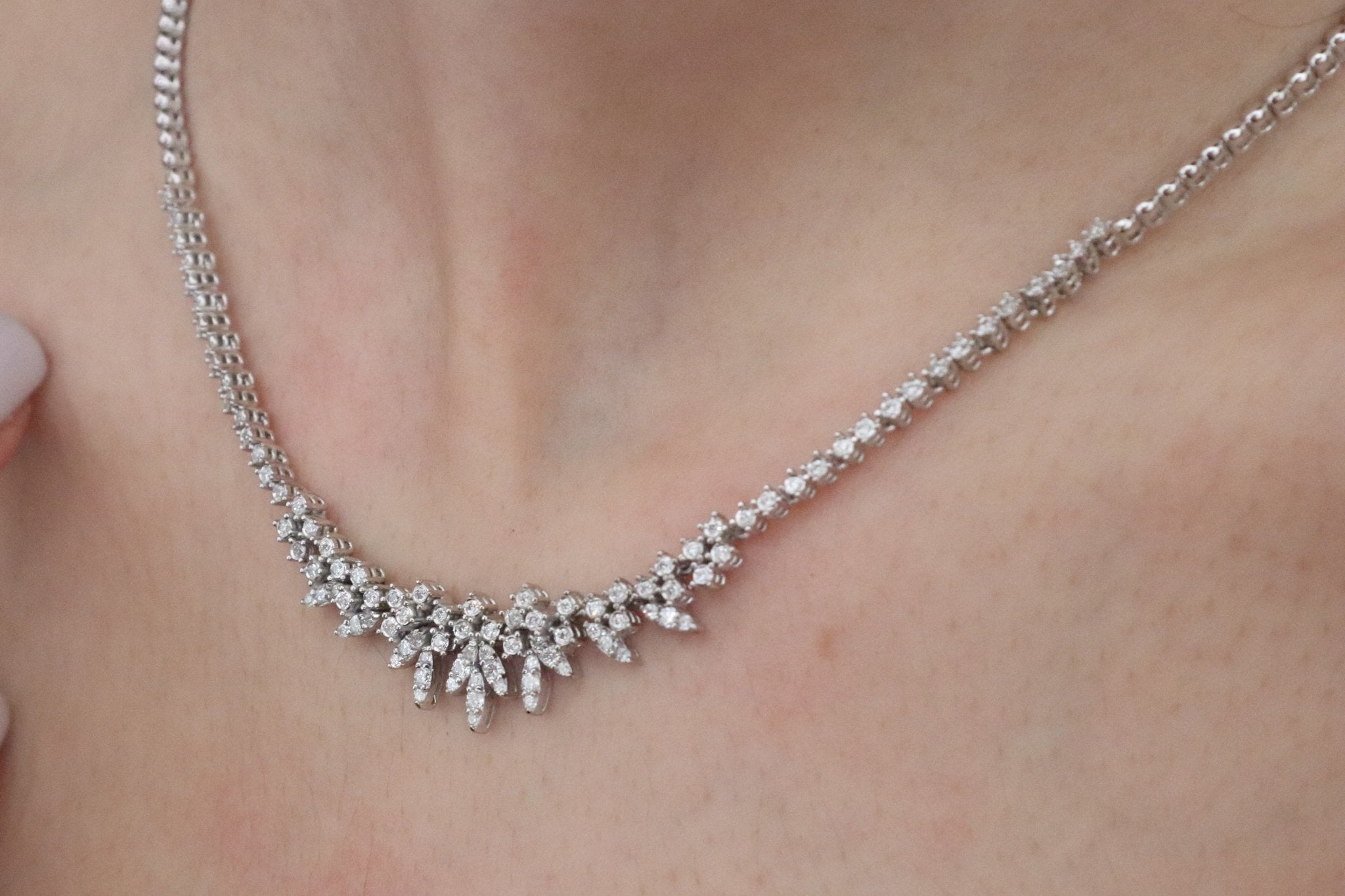 This magnificent Diamond Necklace can be designed in different options. You can contact us to create your own design or make special requests. The weight of the Diamond Necklace product may vary depending on the dimensions you choose.