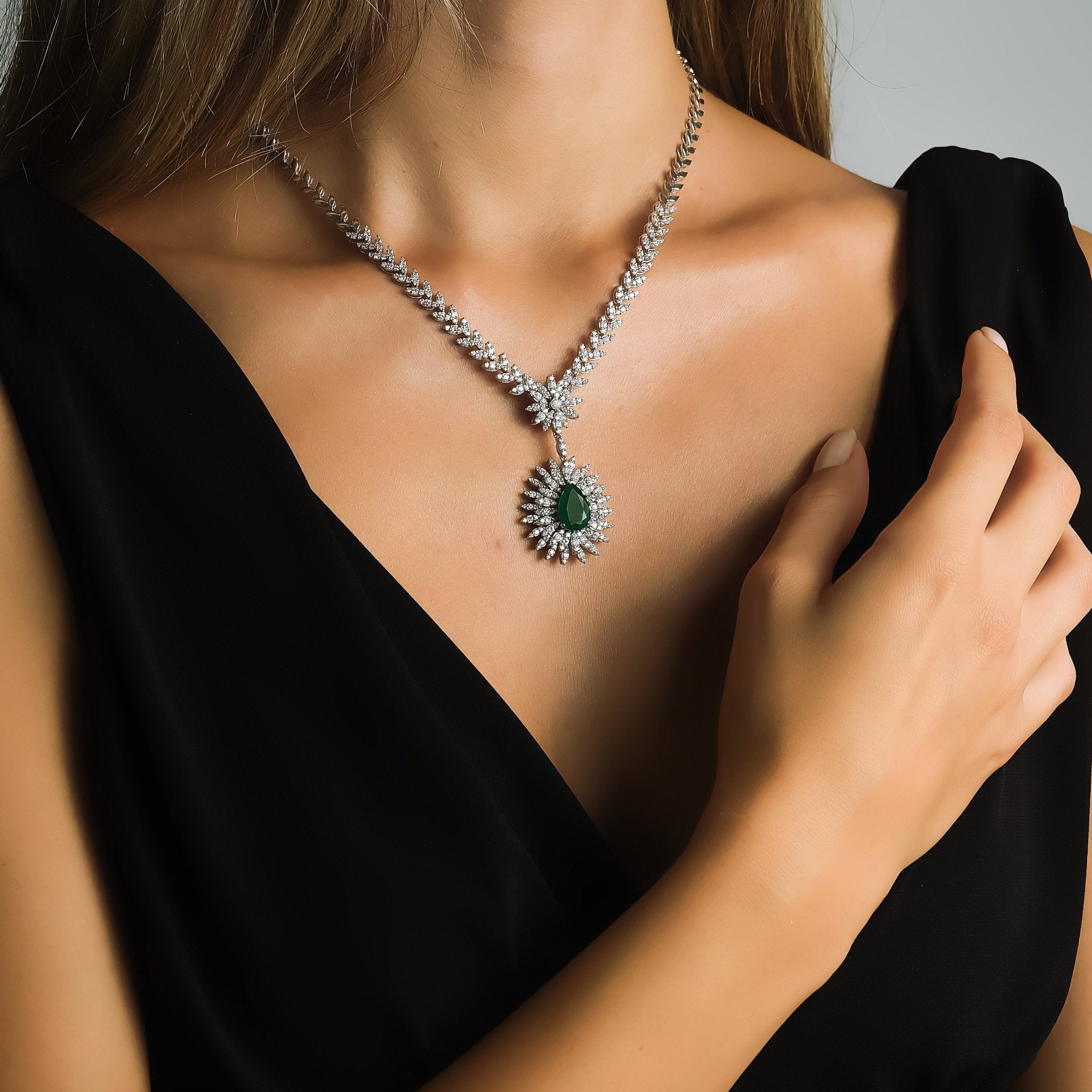 This magnificent Emerald Diamond Necklace can be designed in different options. You can contact us to create your own design or make special requests. The weight of the Emerald Diamond Necklace product may vary depending on the dimensions you choose.