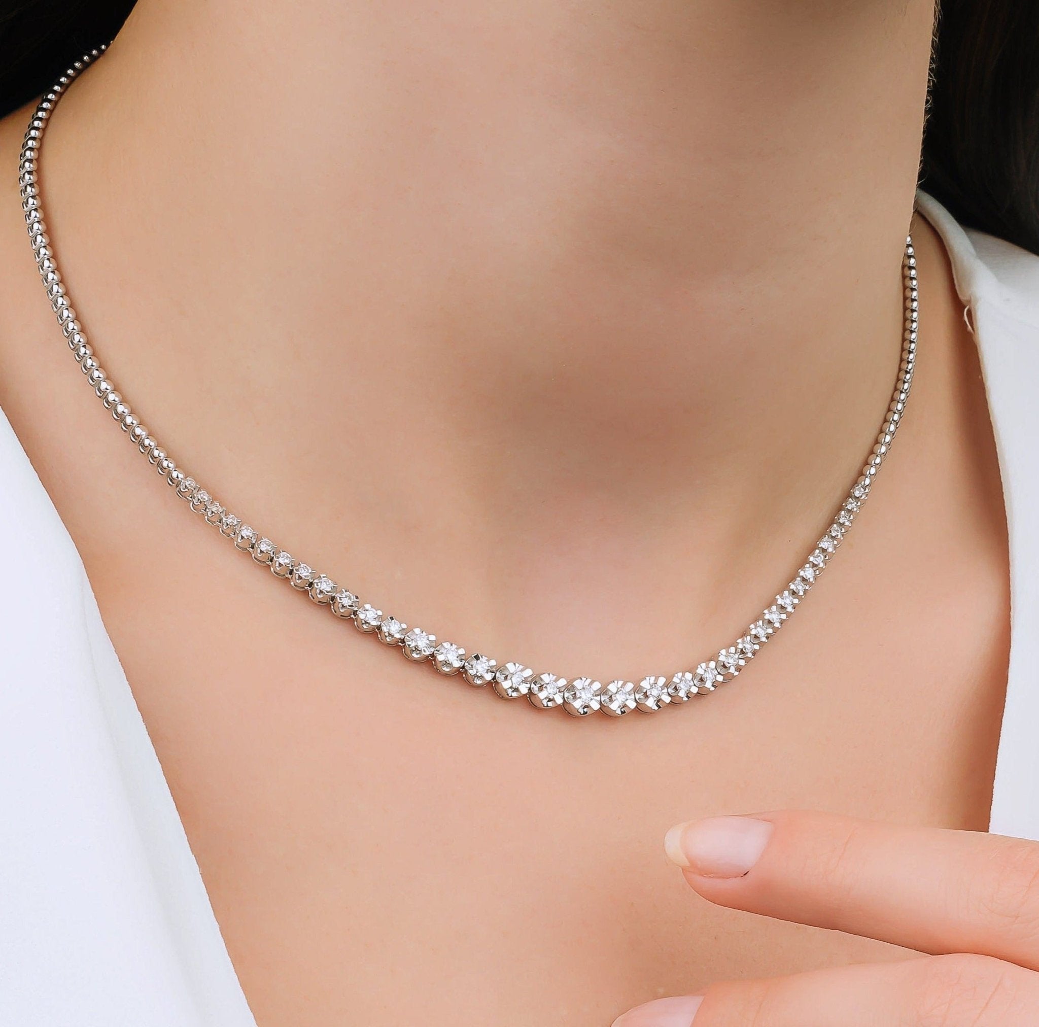 This magnificent Diamond Necklace can be designed in different options. You can contact us to create your own design or make special requests. The weight of the Diamond Necklace product may vary depending on the dimensions you choose.