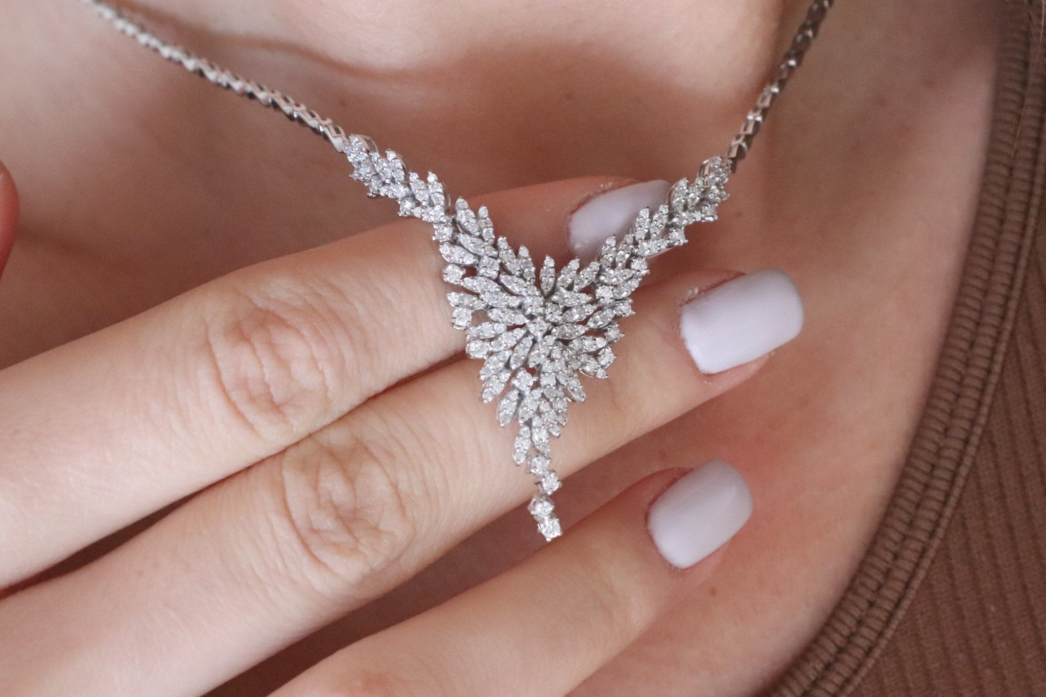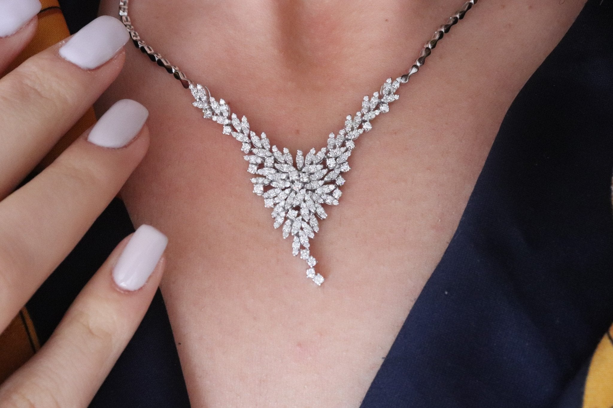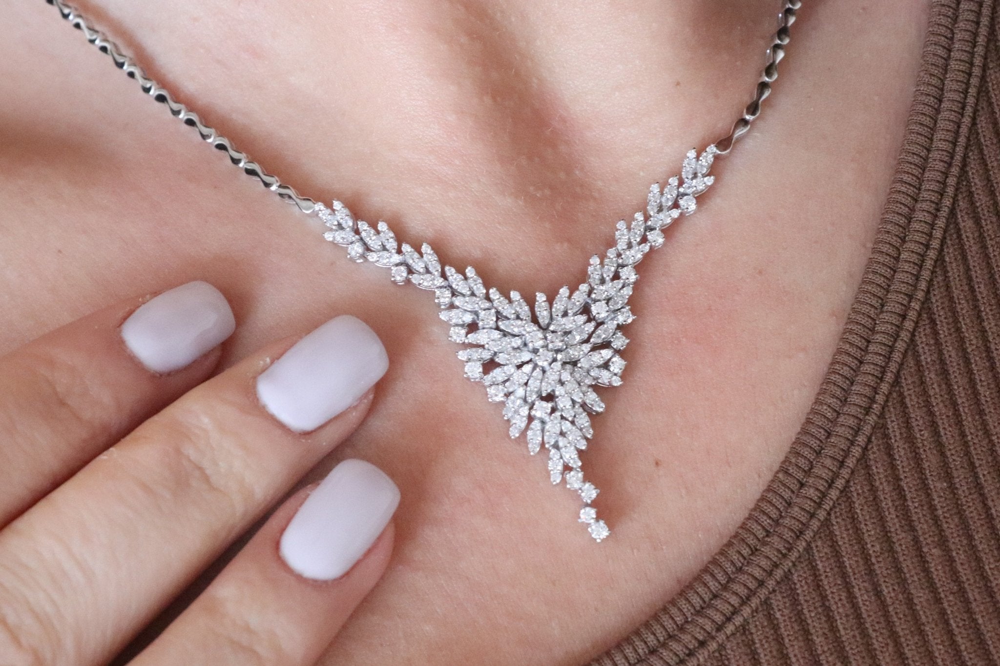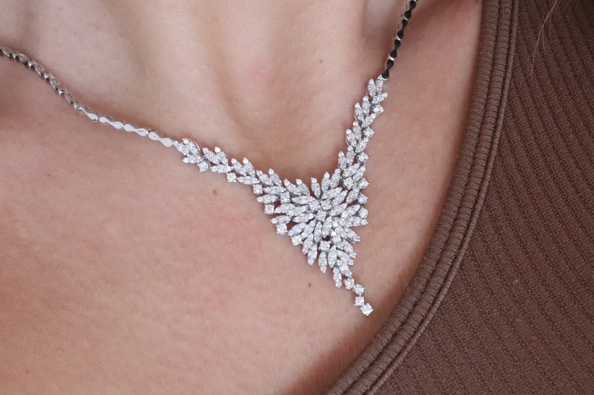 This magnificent Diamond Necklace can be designed in different options. You can contact us to create your own design or make special requests. The weight of the Diamond Necklace product may vary depending on the dimensions you choose.