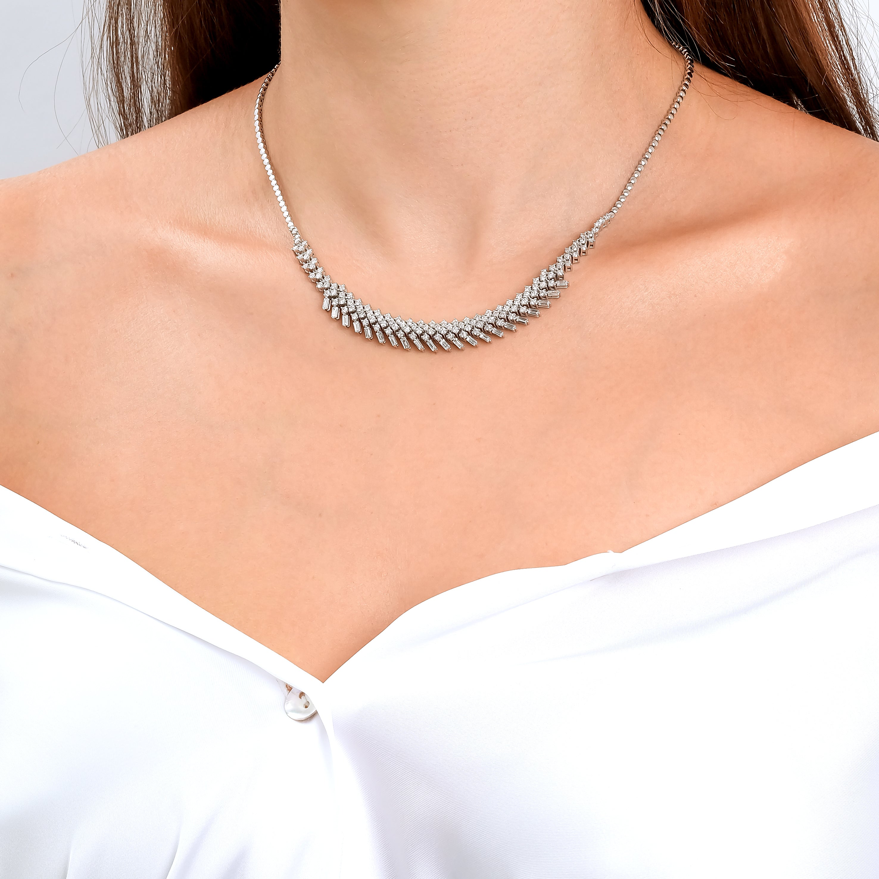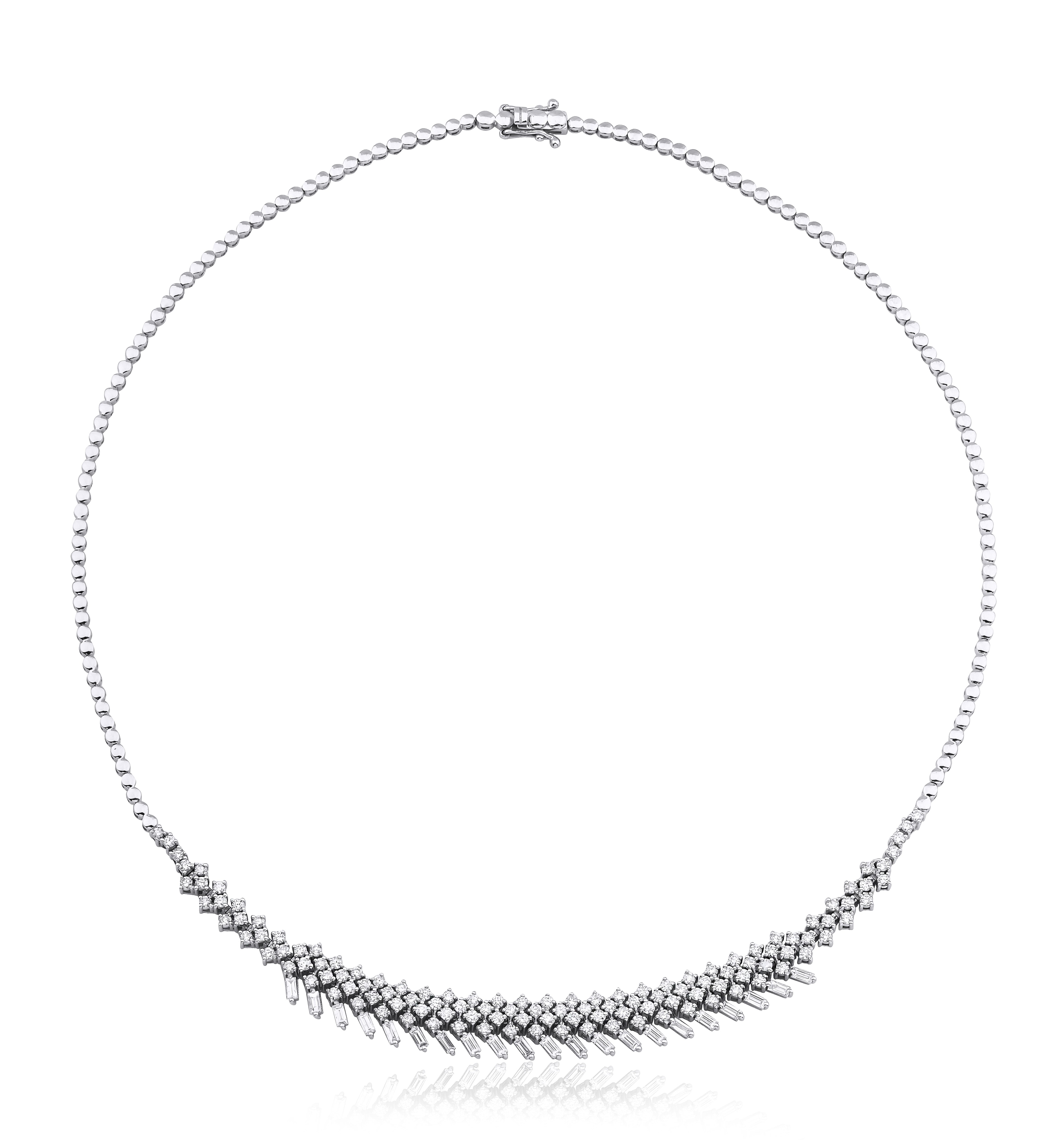3.50 Carat Baguette Round Diamond Special Design Necklace The model is specially designed using 14 Carat White Gold weighing approximately 18.00 grams.