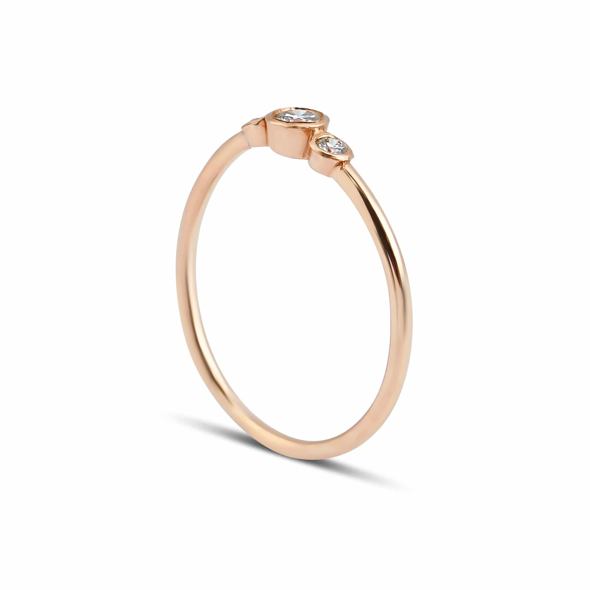 The 0.12 Carat Round Cut Tria Diamond Ring model is specially designed using 14 Carat Rose Gold weighing approximately 2.02 gr.