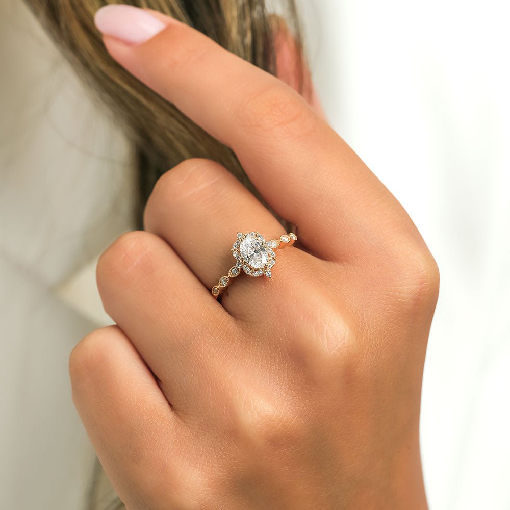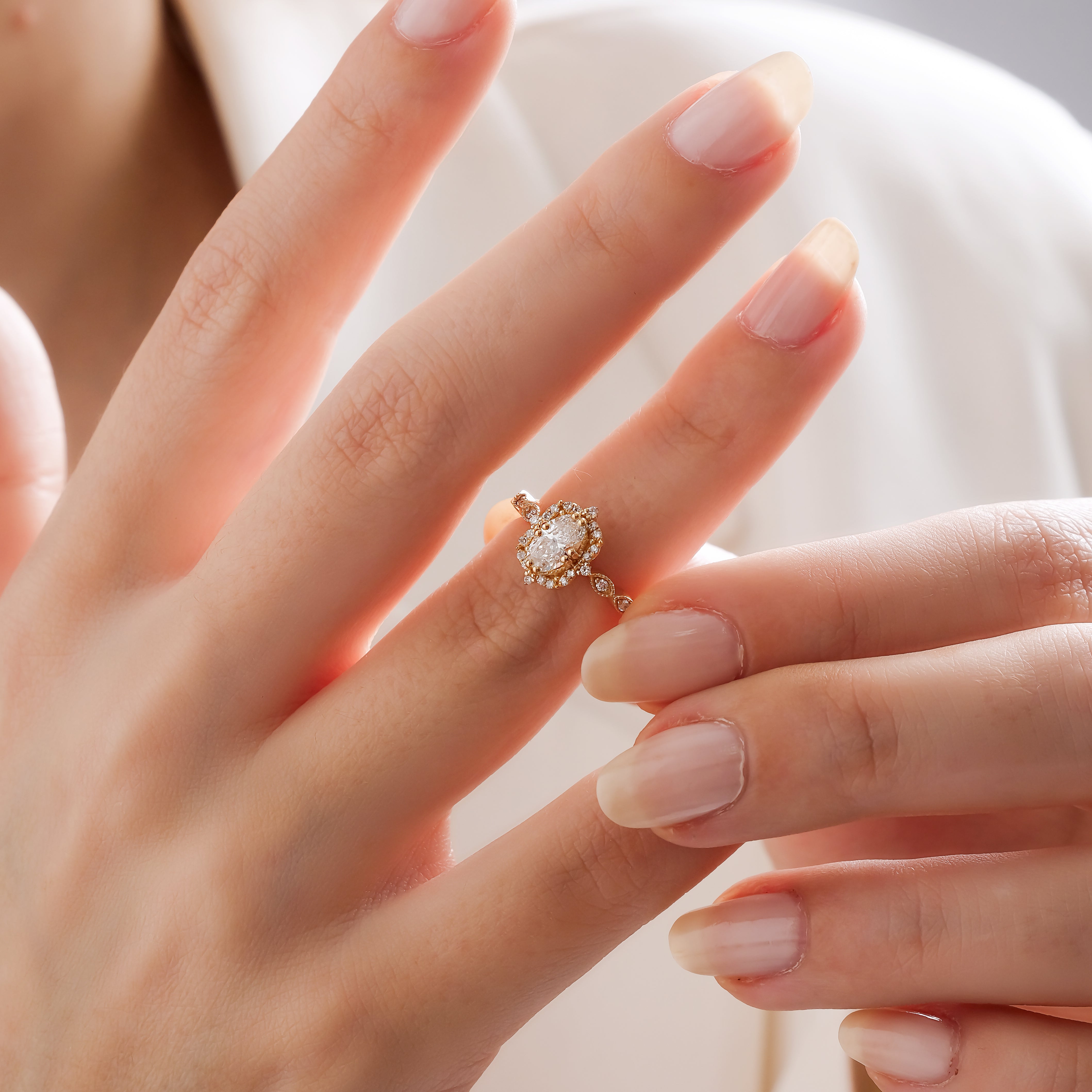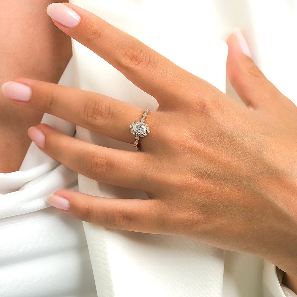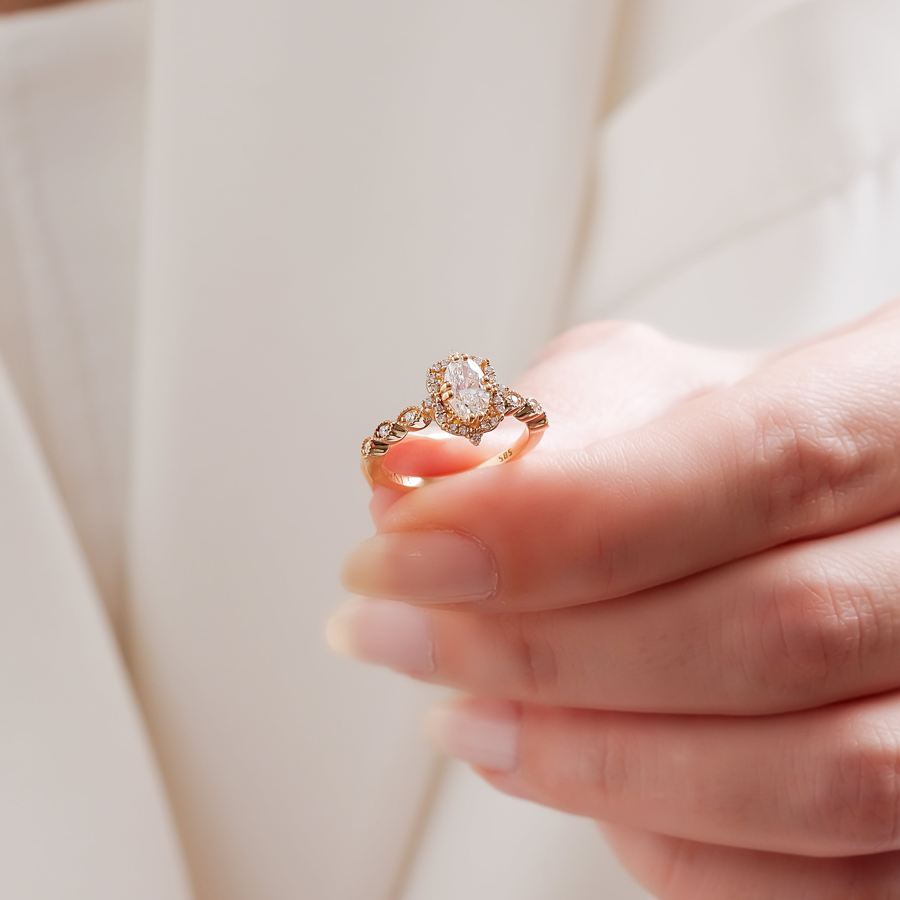 0.50 Carat Oval & 0.18 Carat GIA/HRD Certified Solitaire Diamond Ring (Amber) model is specially designed using 14 Carat Rose Gold weighing approximately 2.20 gr.