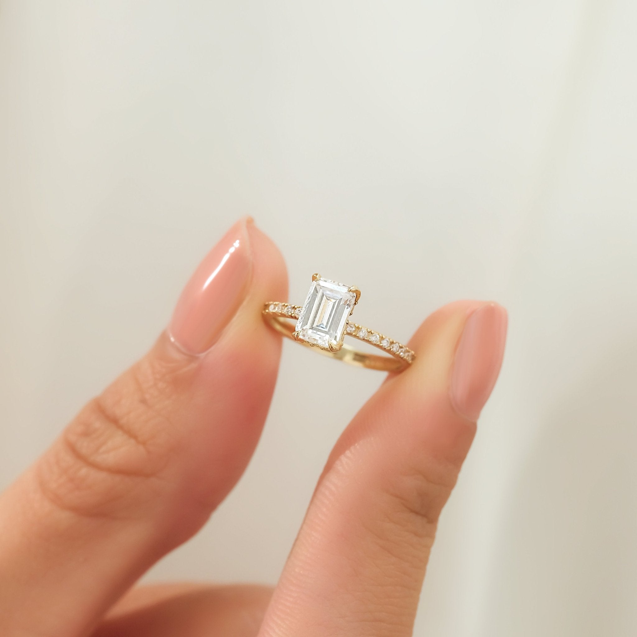1.00 Carat Emerald & 0.20 Carat Round Cut Diamond GIA/HRD Certified Solitaire Ring model is specially designed using 14 Carat Yellow Gold weighing approximately 2.40 gr.