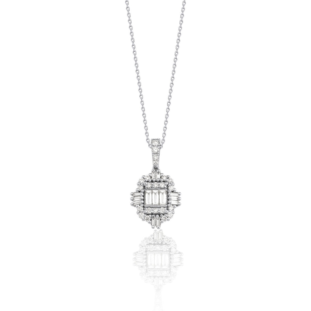 The 0.66 Carat Baguette Diamond Necklace model is specially designed using 14 Carat White Gold weighing approximately 3.61 gr.