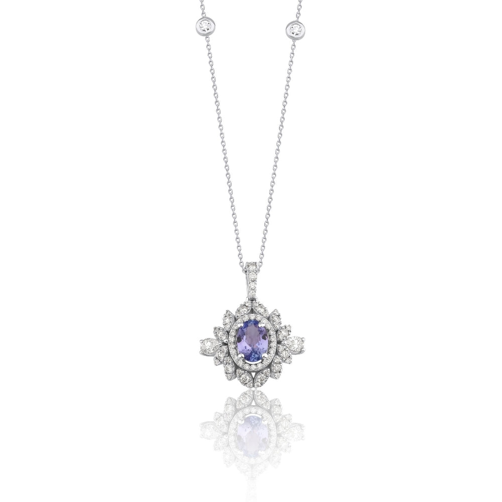 The 0.76 Carat Colored Stone Diamond Necklace model is specially designed using 14 Carat White Gold weighing approximately 4.59 gr.