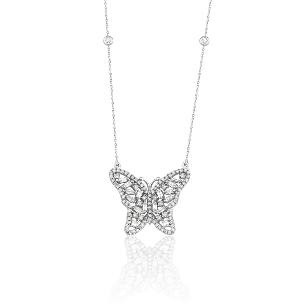 1.23 Carat Butterfly Diamond Necklace-RNF1221 model is specially designed using 14 Carat White Gold weighing approximately 5.71 grams.