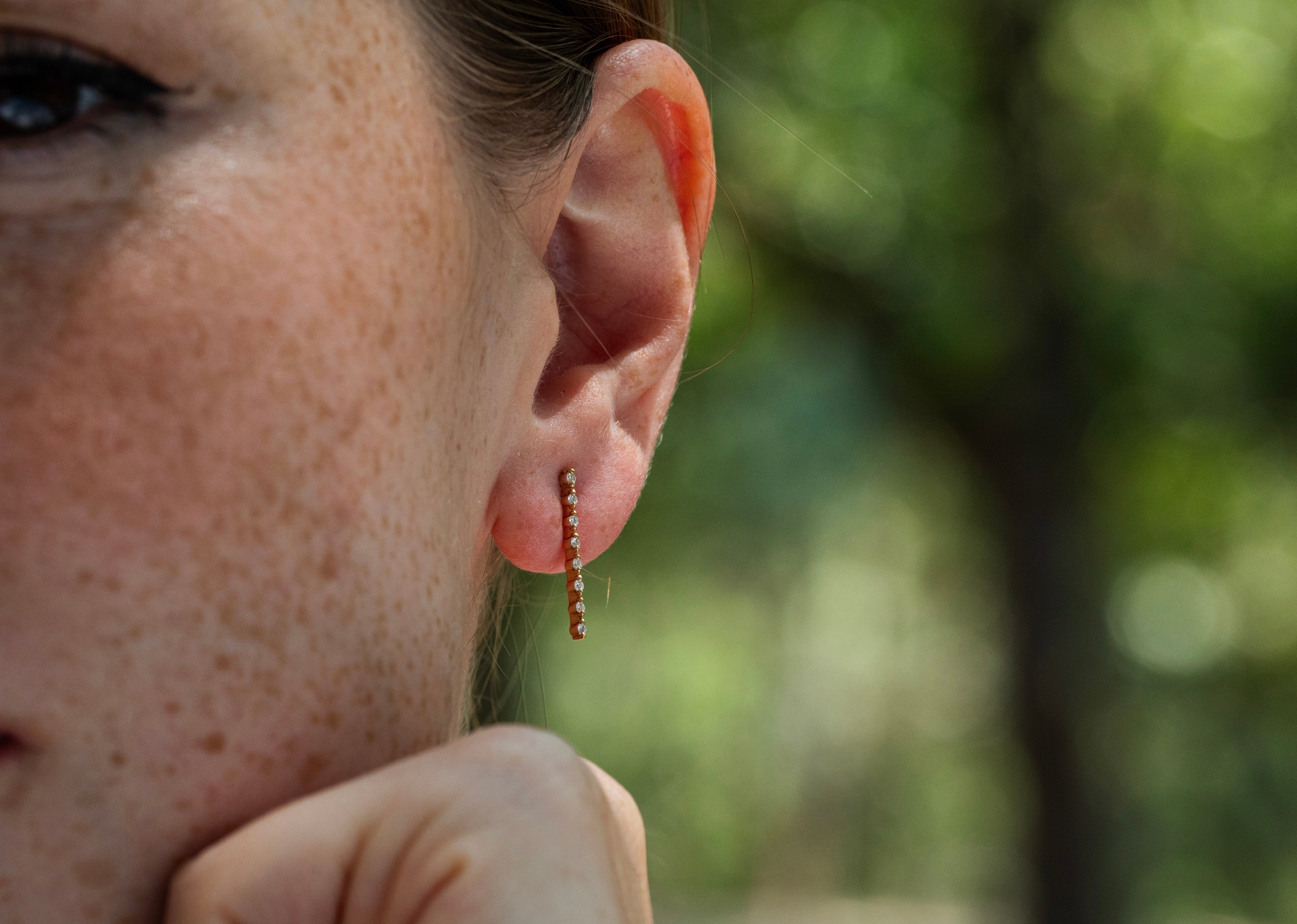 0.14 Carat Diamond Bar Earring model, approx. 14 Carat weight 2.00 gr Specially designed using Rose Gold.