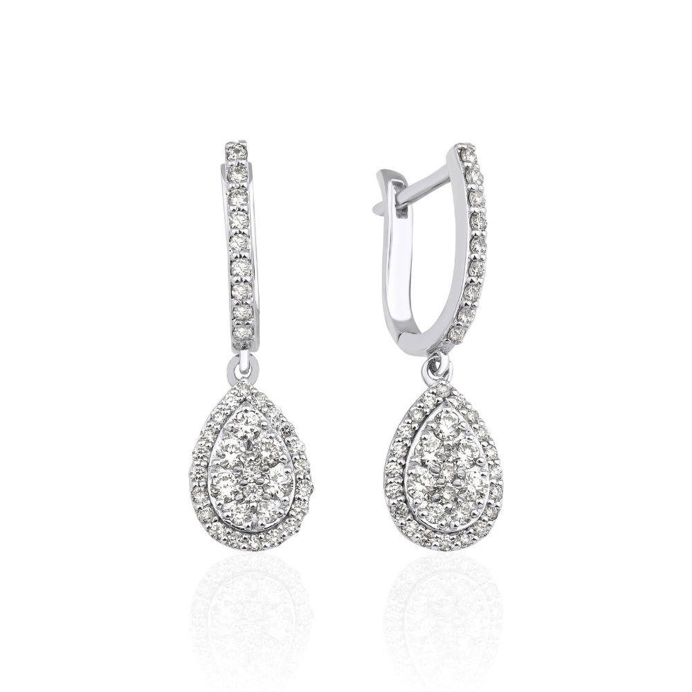 The 0.73 Carat Drop Diamond Earring model is specially designed using 14 Carat White Gold weighing approximately 3.21 grams.