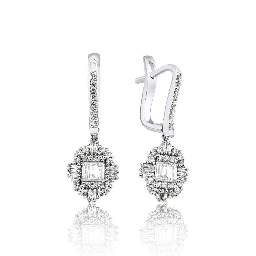 1.11 Carat Baguette Diamond Earring model is specially designed using 14 Carat White Gold weighing approximately 5.40 gr.