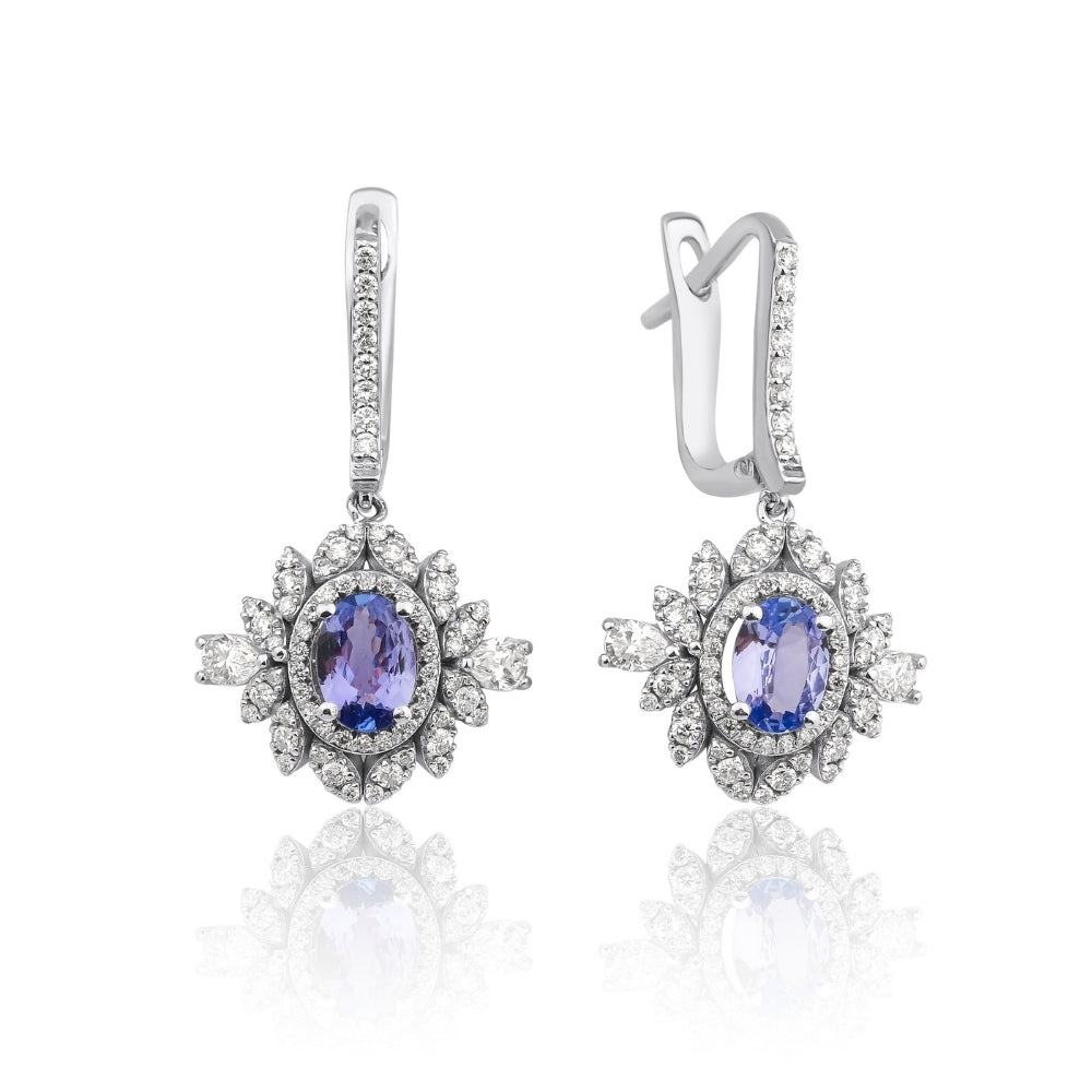 1.30 Carat Colored Stone Diamond Earring model is specially designed using 14 Carat White Gold weighing approximately 7.51 gr.