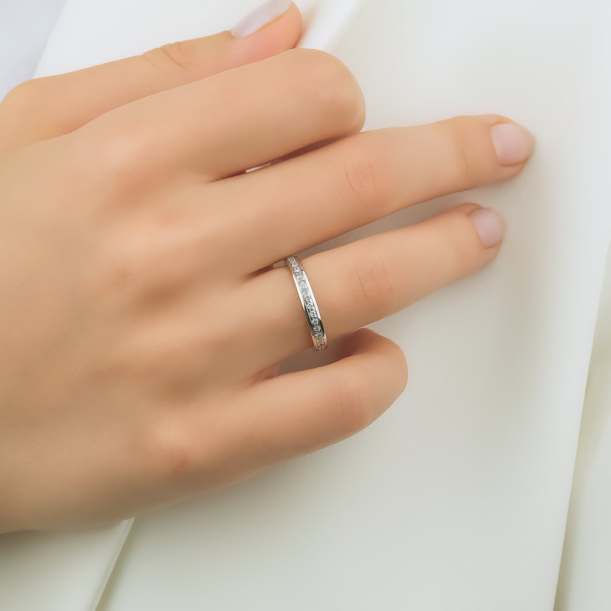 3mm Diamond White Gold Single Domed Wedding Ring The model is specially designed using 14K White Gold weighing approximately 2.80 grams.