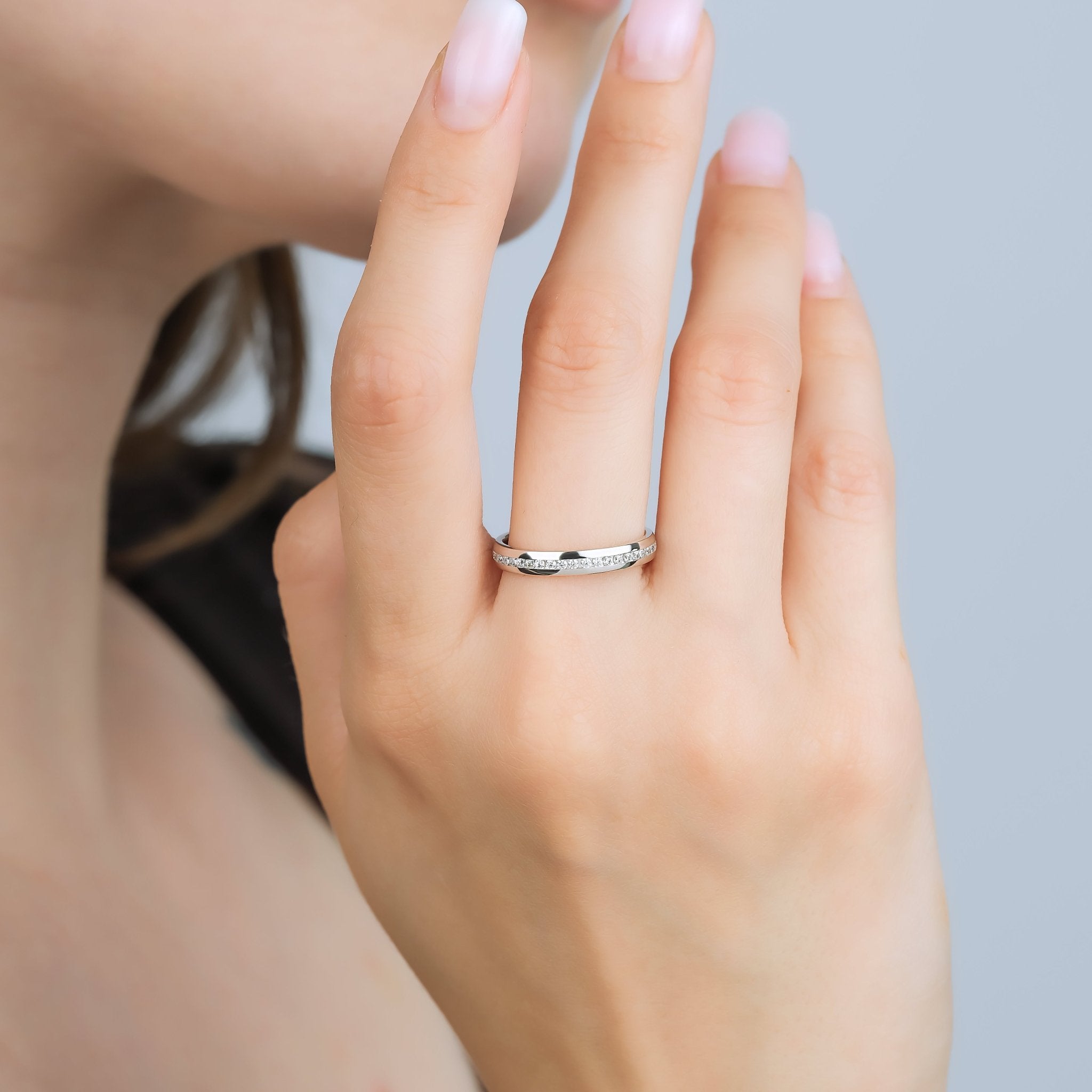 3mm Diamond White Gold Single Domed Wedding Ring - RNF0574