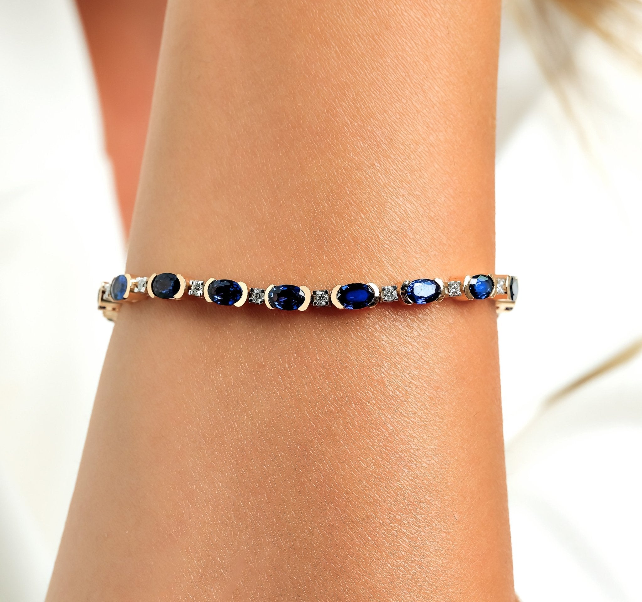 This magnificent Sapphire Diamond Bracelet can be designed in different options. You can contact us to create your own design or make special requests. The weight of the Sapphire Diamond Bracelet product may vary depending on the dimensions you choose.
