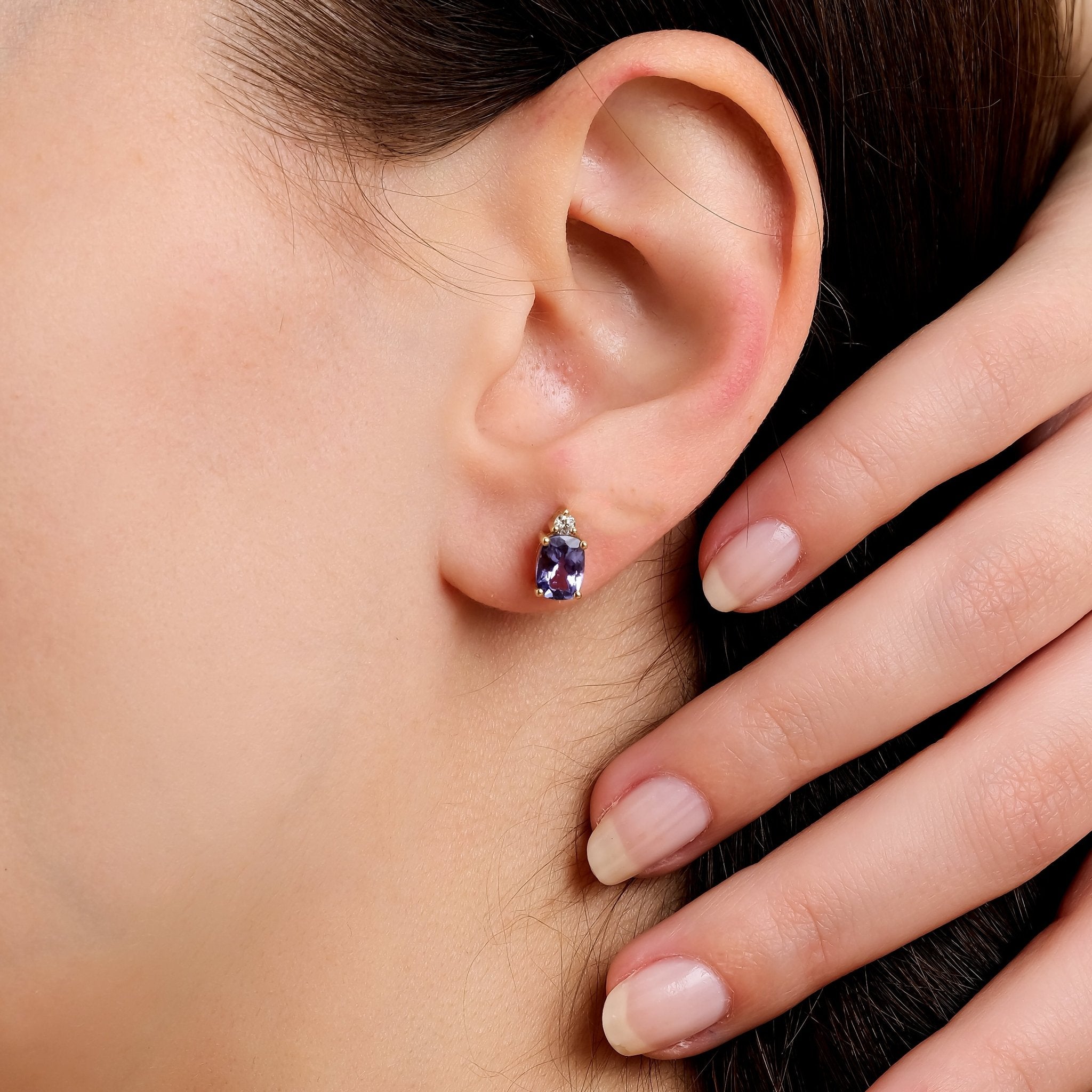 1.60 Carat Oval Tanzanite & 0.06 Carat Round Cut Diamond Earring - RNF01034