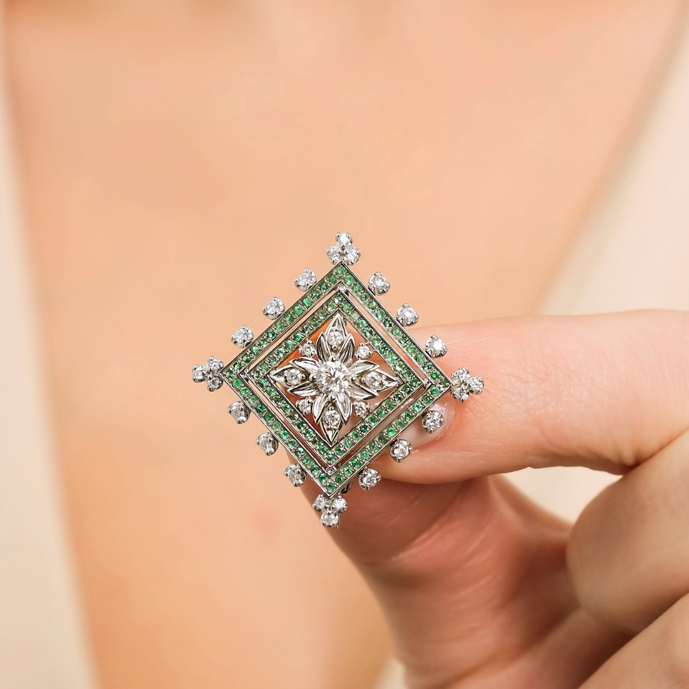 This magnificent Colored Stone Diamond Brooch can be designed in different options. You can contact us to create your own design or make special requests. The weight of the Colored Stone Diamond Brooch product may vary depending on the dimensions you choose.