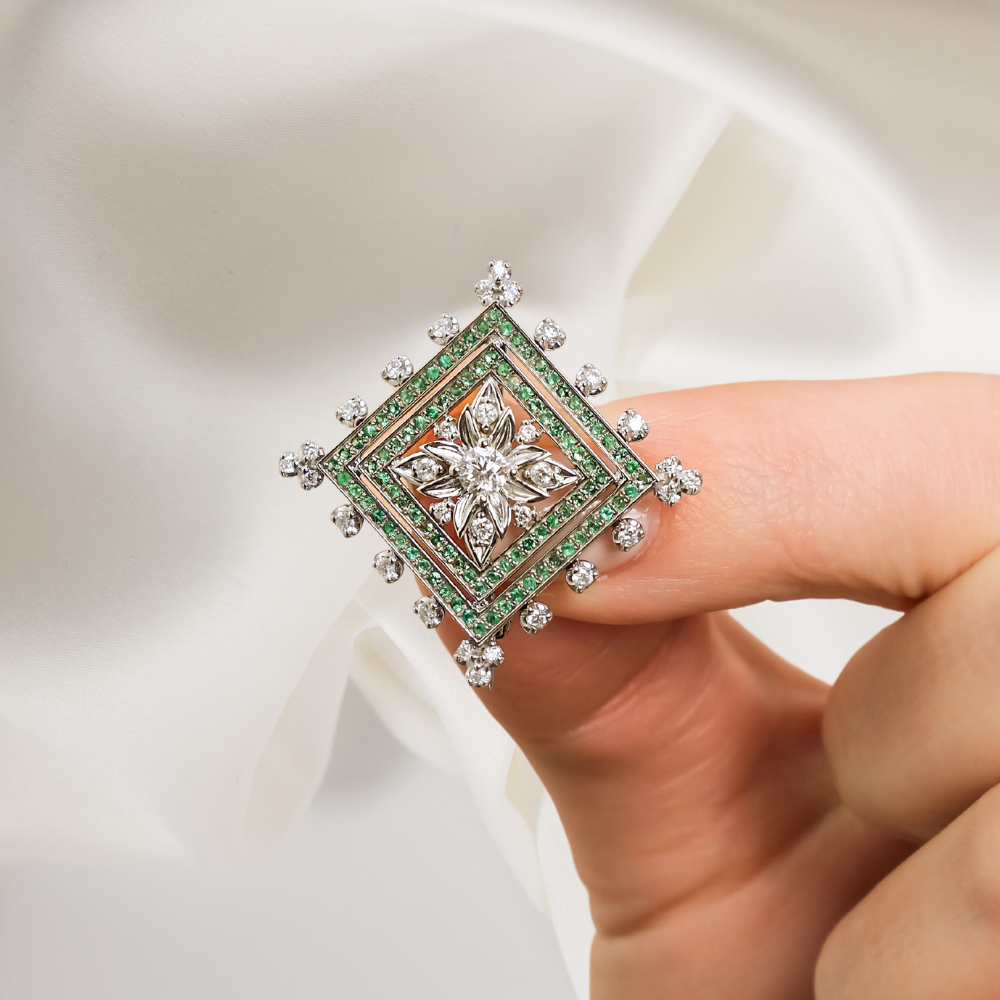 1.00 Carat Natural Emerald & 0.70 Carat Diamond Special Design Brooch-RNF1353