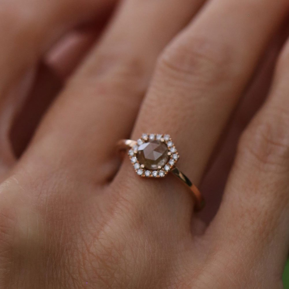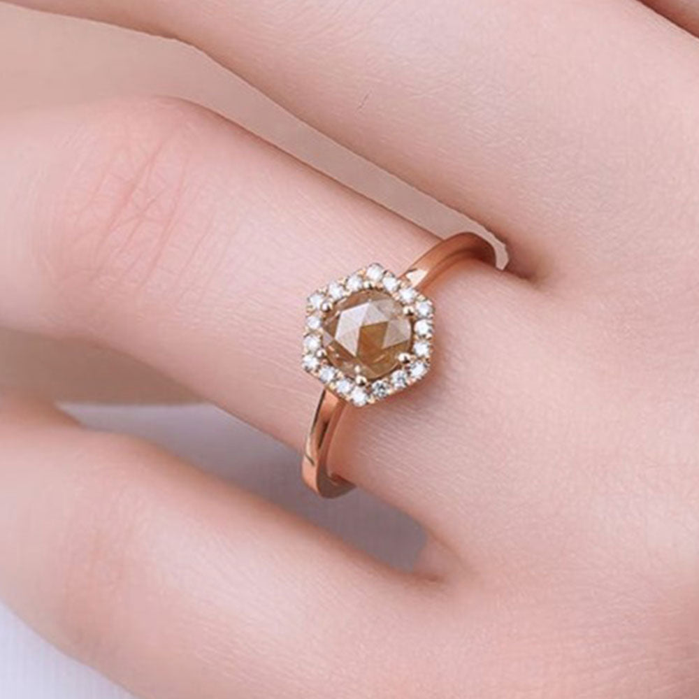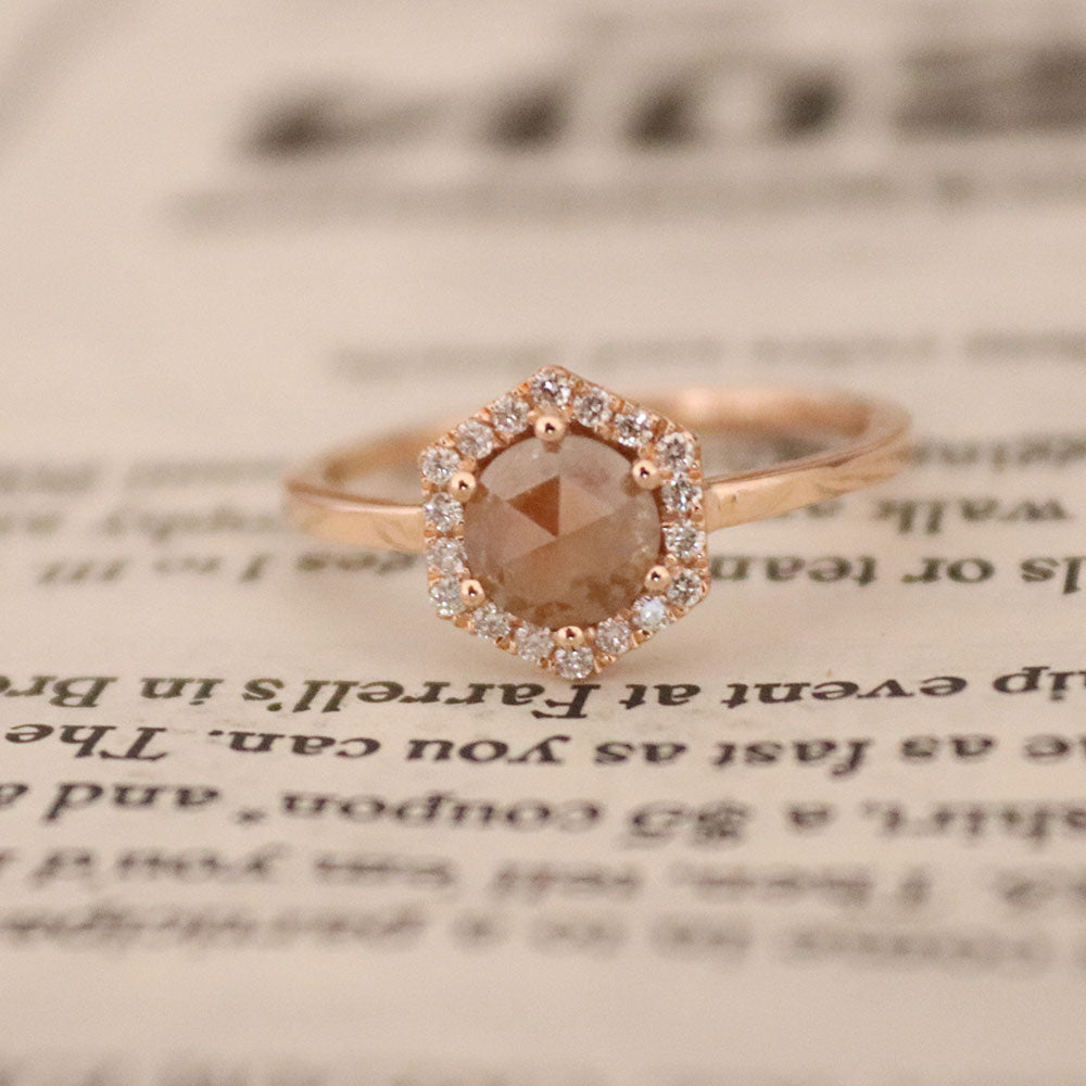 1.08 Carat Salt and Pepper Diamond Ring (Caramel) model is specially designed using 14 Carat Rose Gold weighing approximately 3.30 gr.