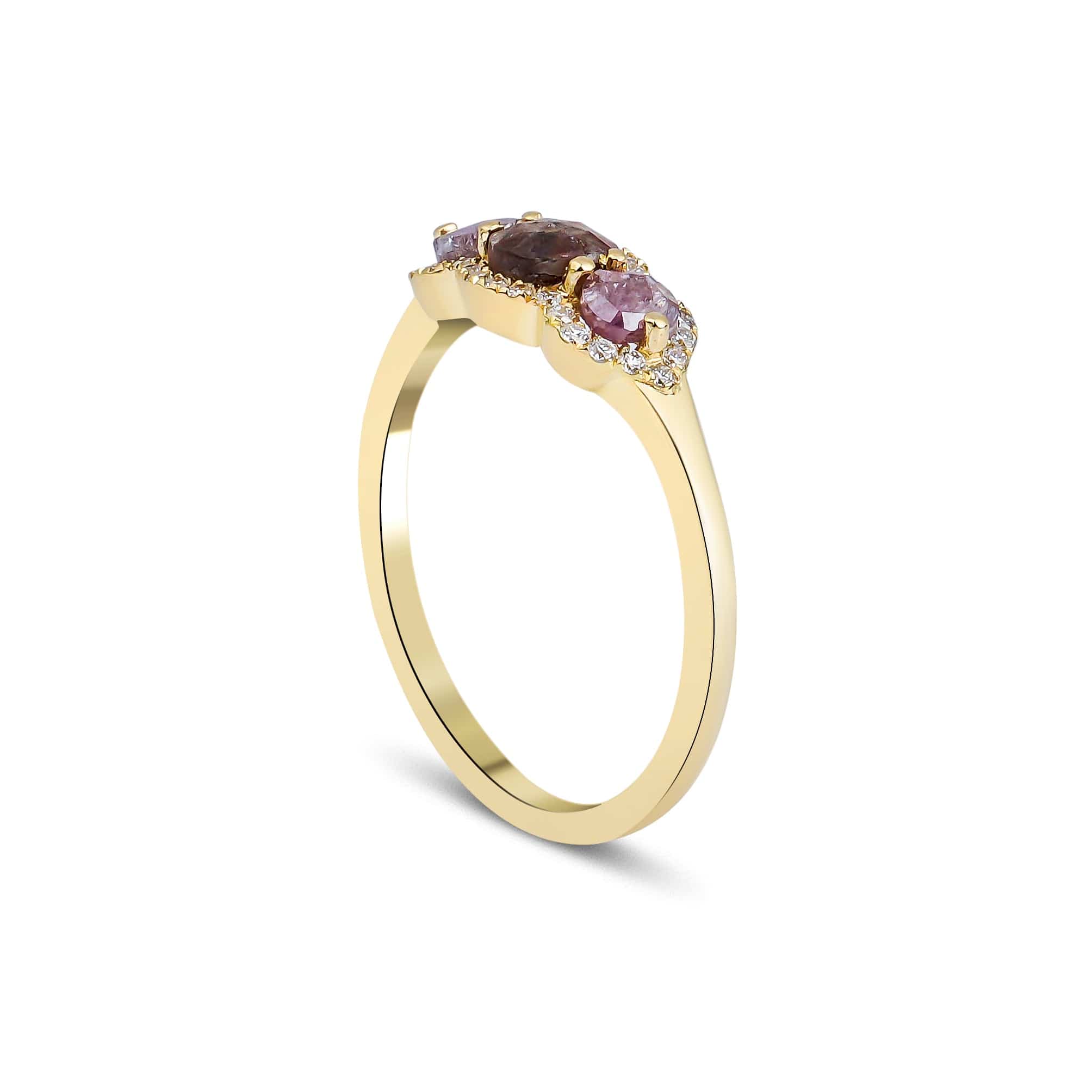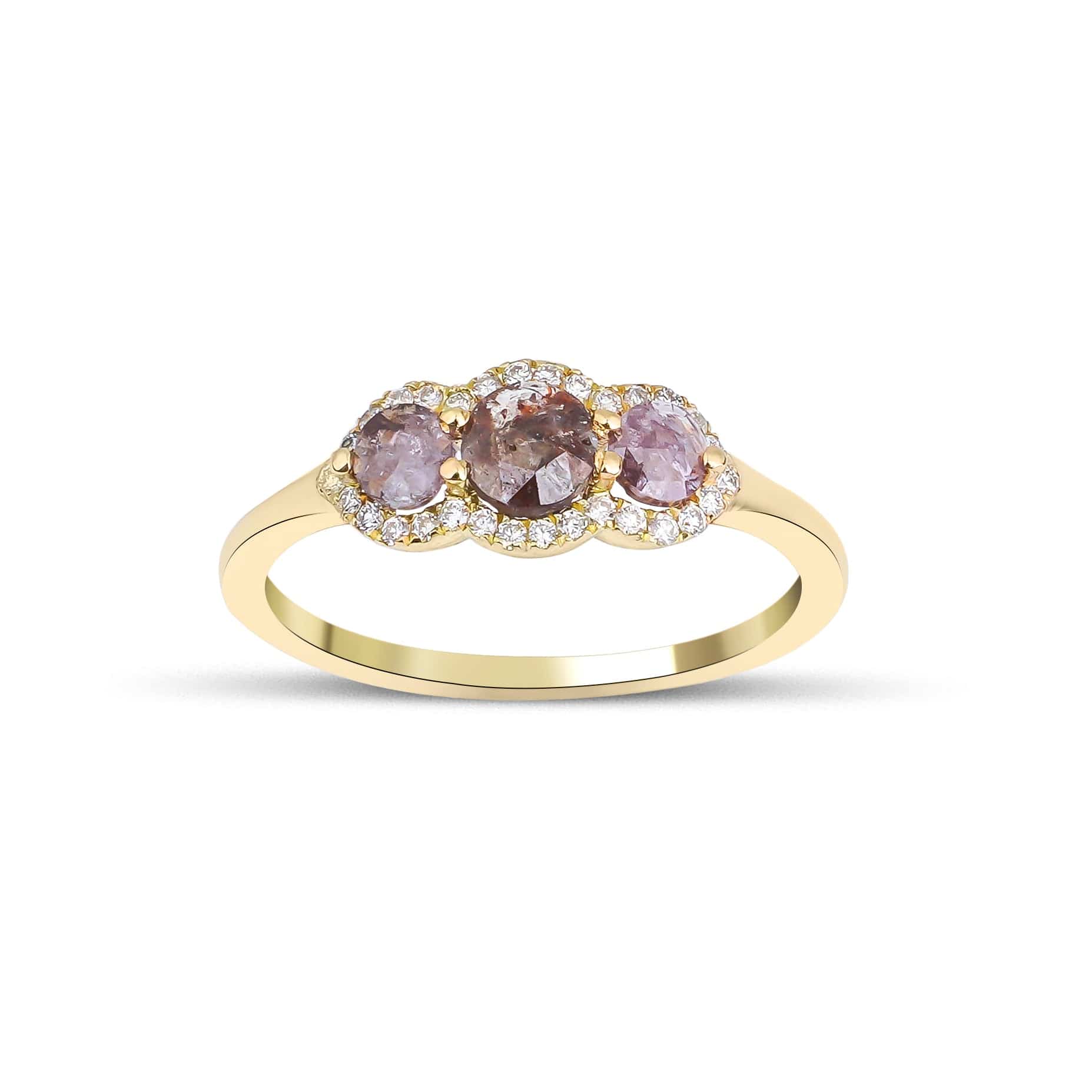 The 1.20 Carat Salt and Pepper Tria Diamond Ring model is specially designed using 14 Carat Yellow Gold weighing approximately 3.40 gr.