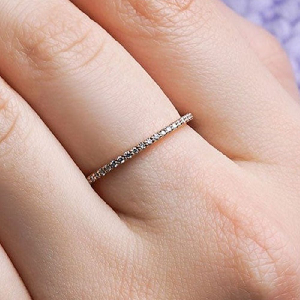 The 0.38 Carat Diamond Thin Full Circle Rose Ring model is specially designed using 14 Carat Rose Gold weighing approximately 2.24 grams.
