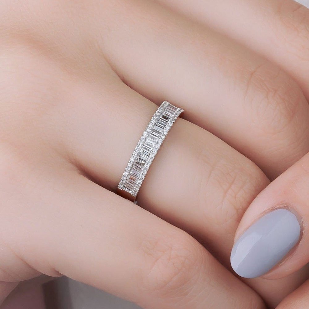 0.74 Carat & 0.44 Carat Baguette Diamond Eternity Ring model is specially designed using 14 Carat White Gold weighing approximately 3.90 gr.