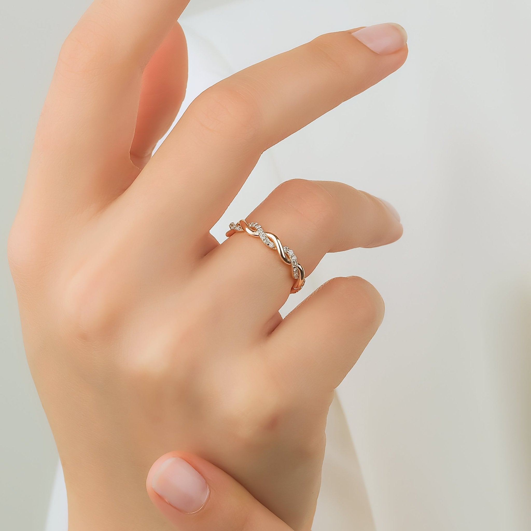 The 0.15 Carat Diamond Spiral Eternity Ring model is specially designed using 14 Carat Rose Gold weighing approximately 1.55 gr.