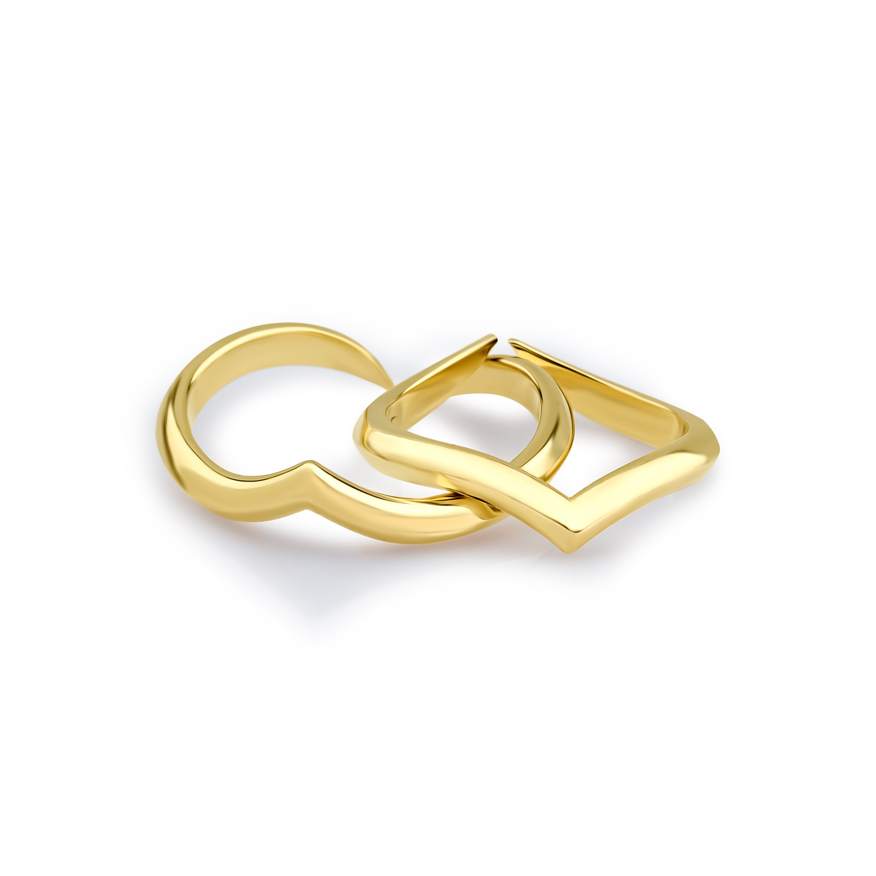 3 mm & 4 mm Double Yellow Gold Special Design Wedding Ring-RNF1361