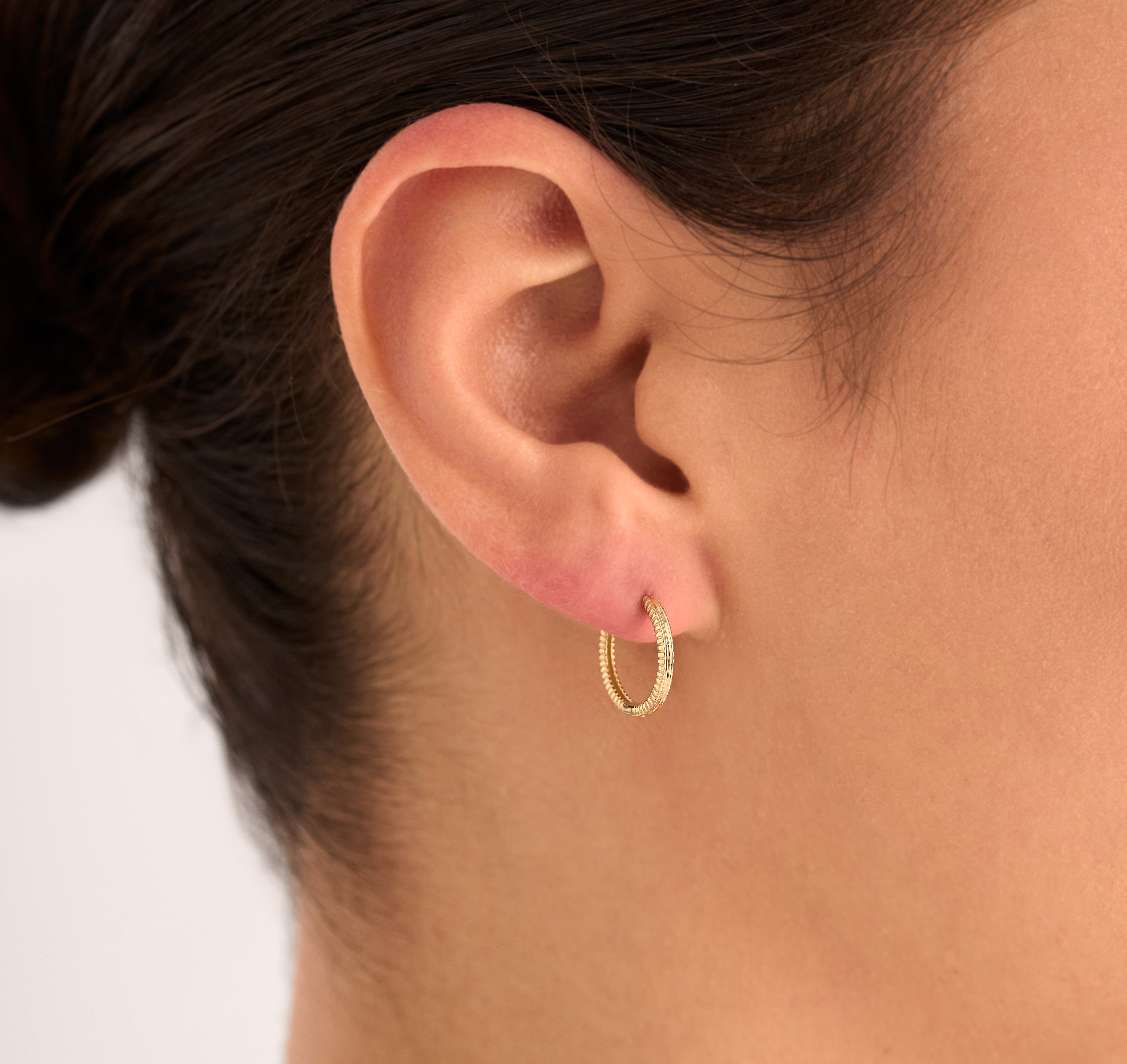 Özel Tasarım Küpe modeli, yaklaşık 2.66 gr ağırlığında 14 Ayar Sarı Altın kullanılarak özel olarak tasarlanmıştır.