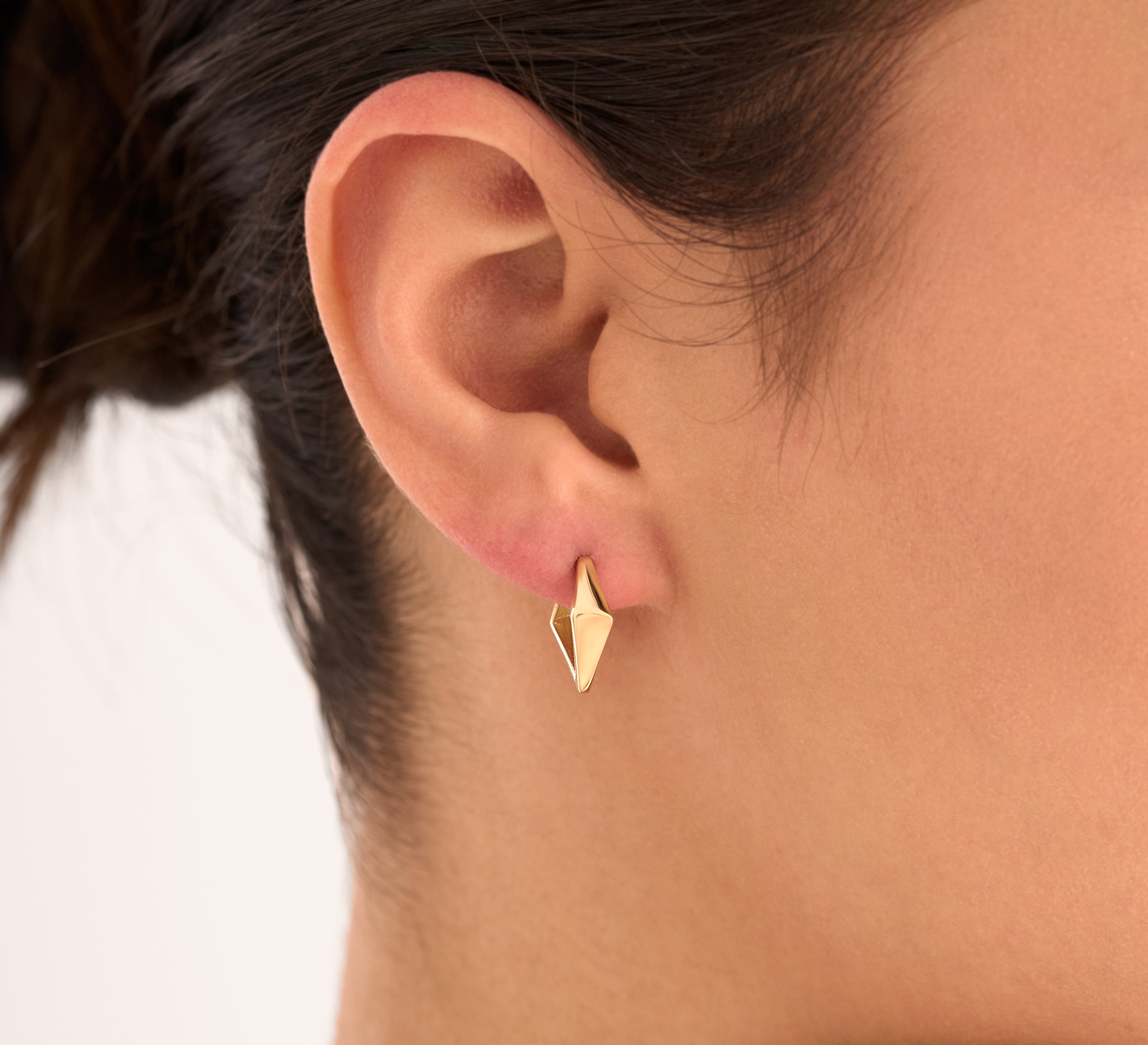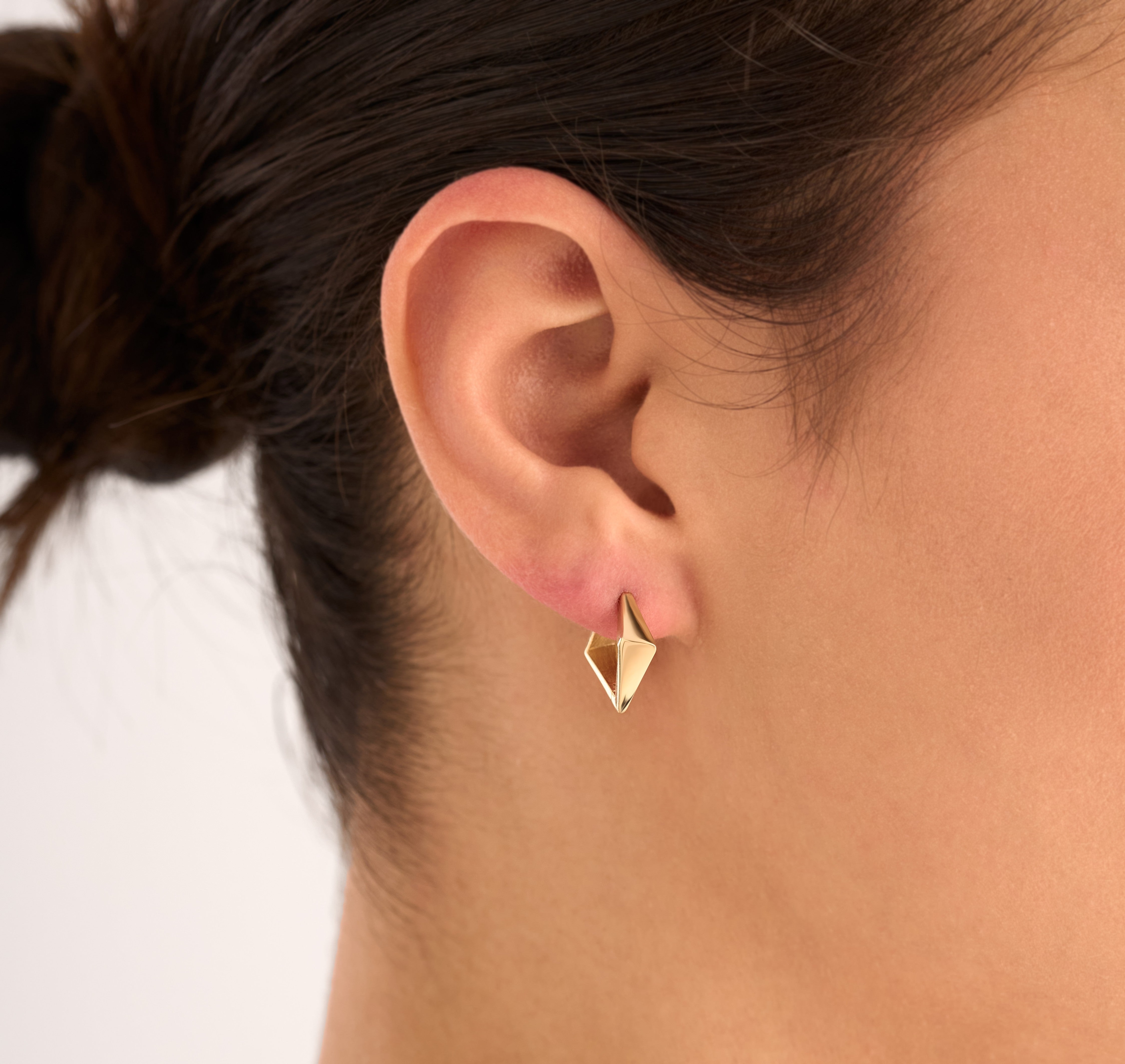 Özel Tasarım Prizma Model Küpe modeli, yaklaşık 2.23 gr ağırlığında 14 Ayar Sarı Altın kullanılarak özel olarak tasarlanmıştır.