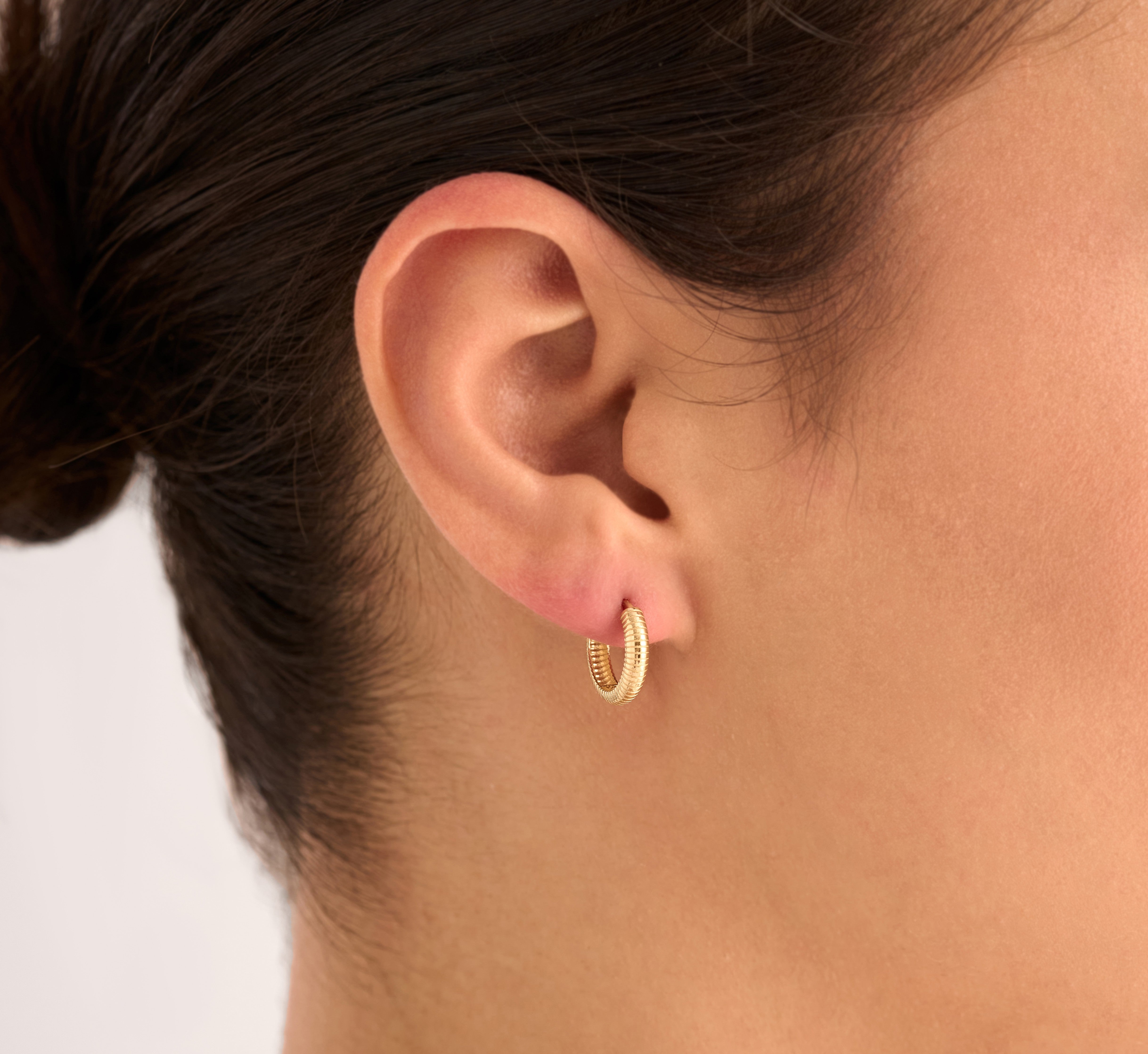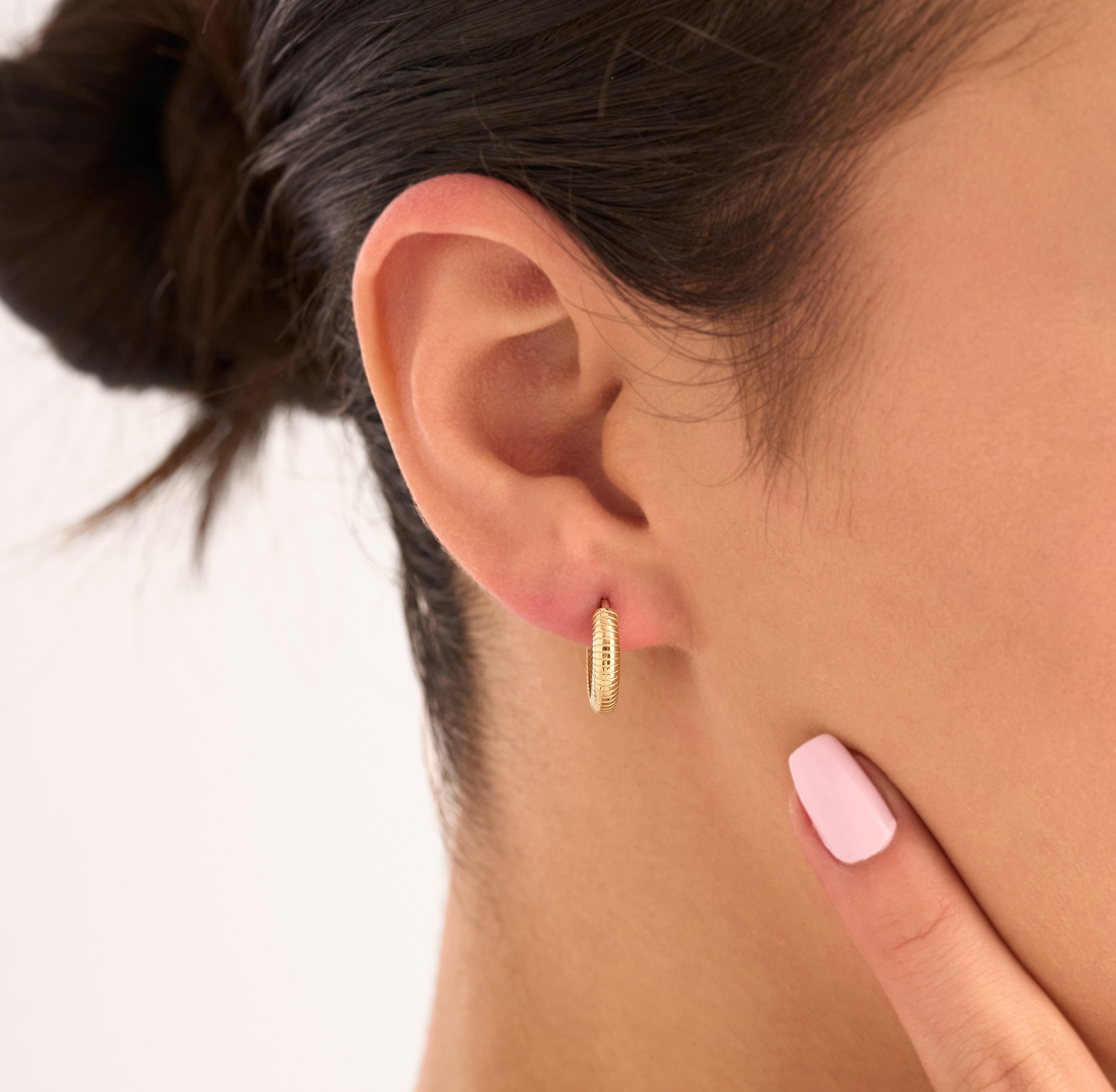14 Ayar Özel Tasarım Şerit Motifli Altın Küpe RG012