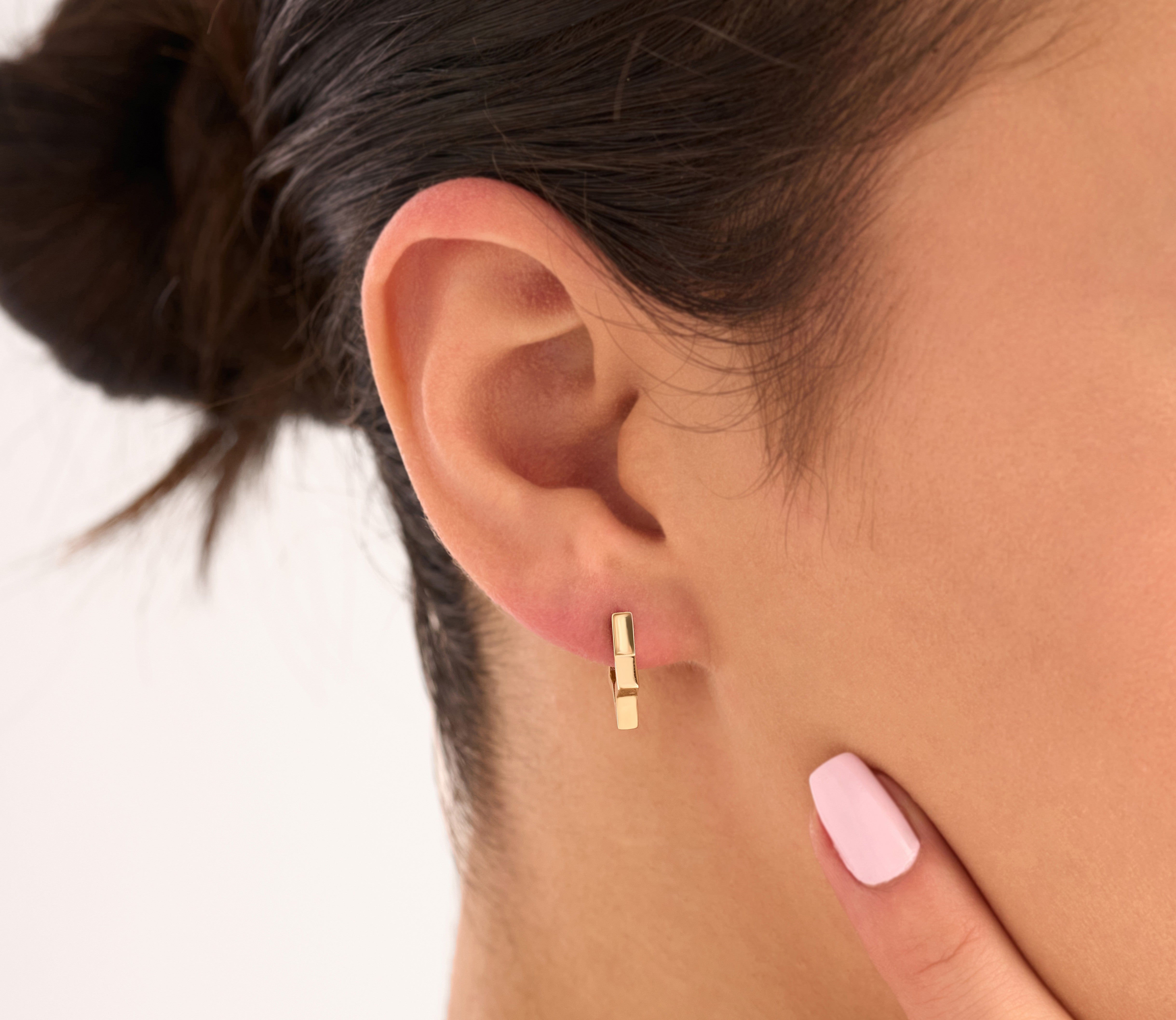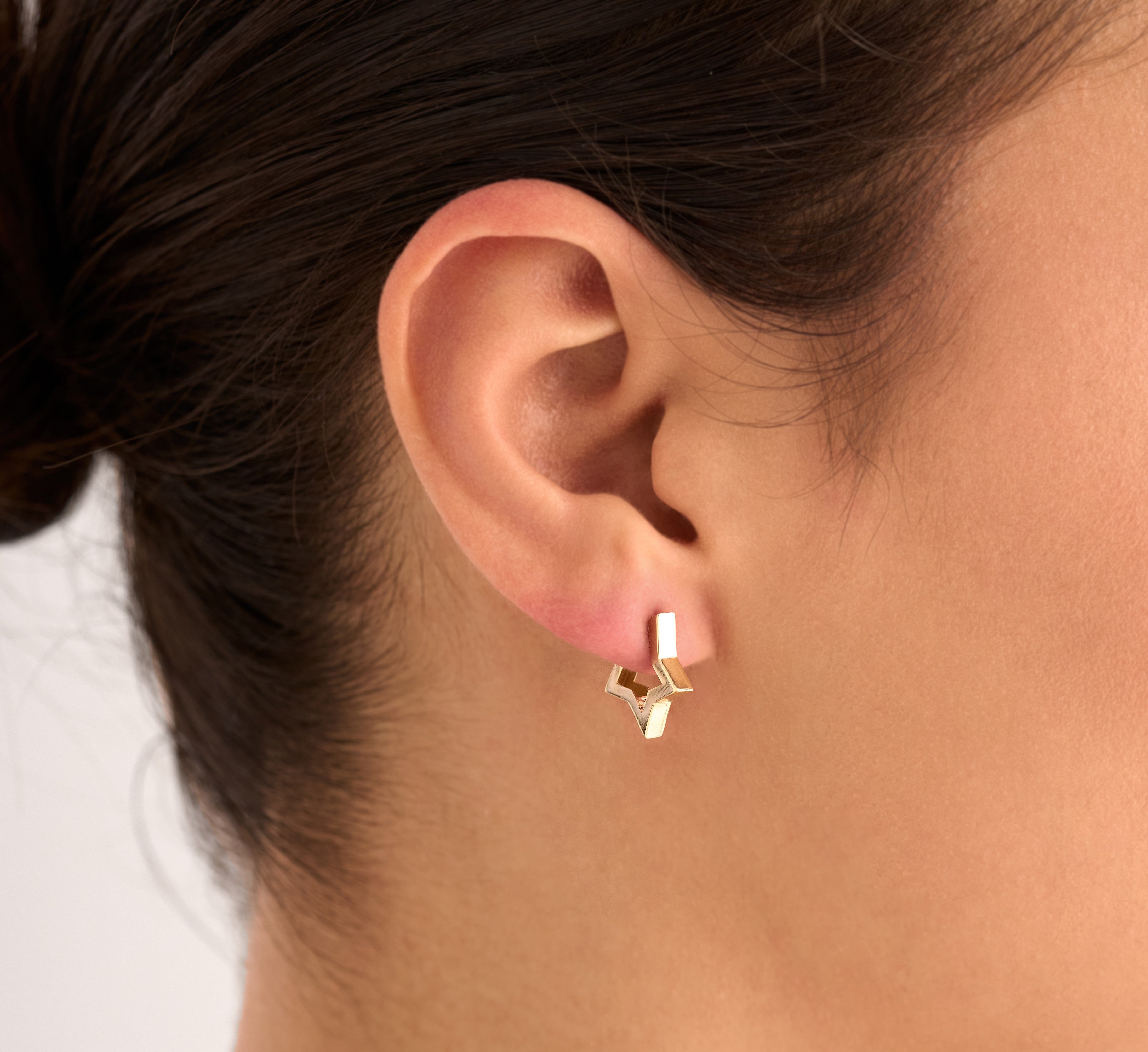 Özel Tasarım Yıldız Motifli Küpe modeli, yaklaşık 2.14 gr ağırlığında 14 Ayar Sarı Altın kullanılarak özel olarak tasarlanmıştır.
