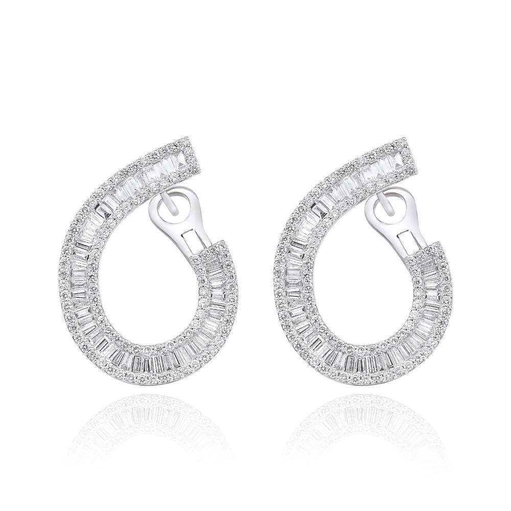 3.00 Carat Baguette & 0.55 Carat Round Diamond Design Earring model is specially designed using 14 Carat White Gold weighing approximately 7.80 gr.